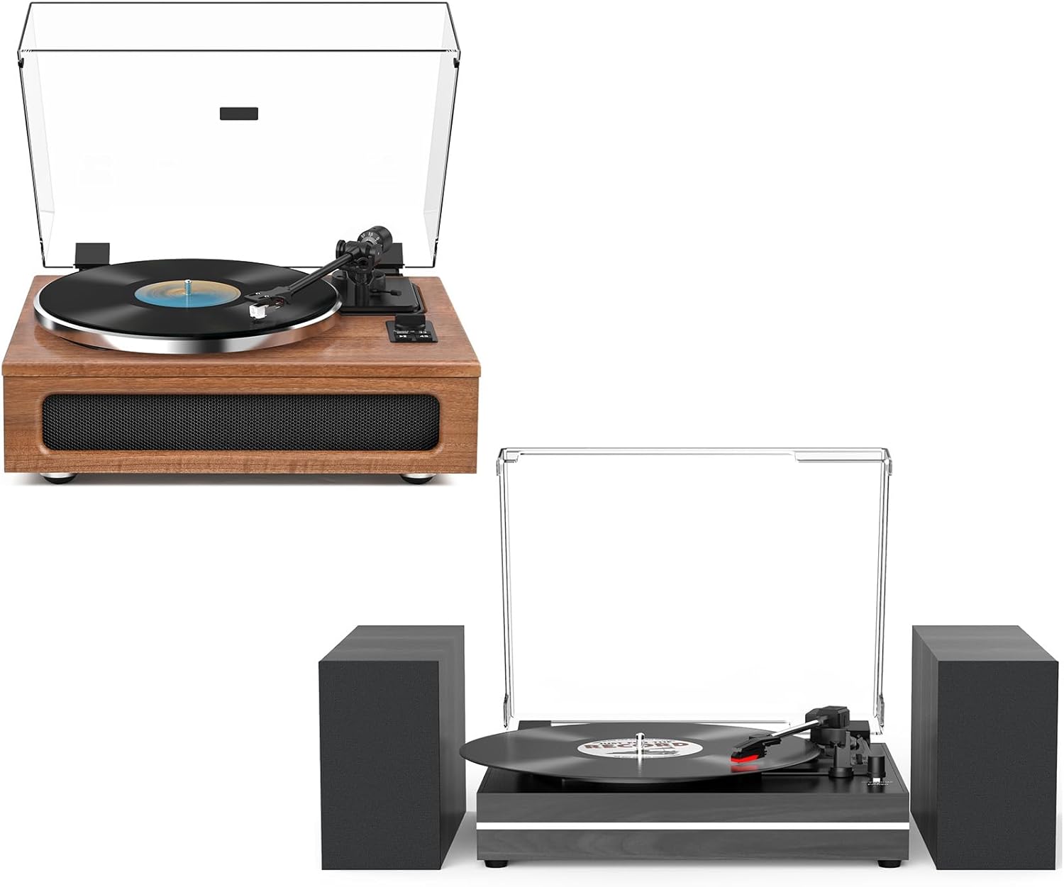 Record Player with Two External Speakers Black and Turntable for Vinyl Records with Built-in Four Speakers Brown