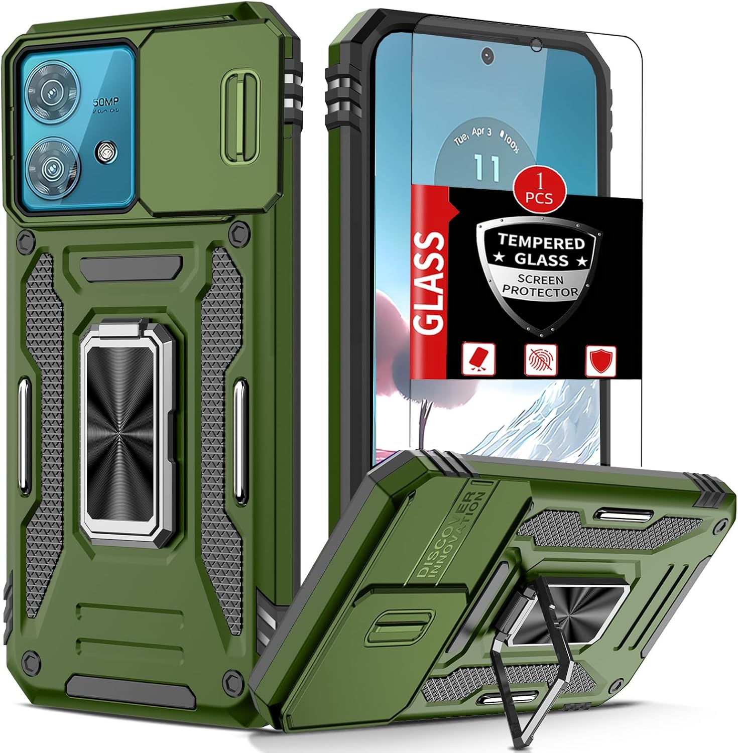 for Motorola Edge 40 Neo Case with 2 Screen Protectors,with Slide Camera Cover,for Edge 40 Neo Case with Kickstand Ring Shockproof Anti-Scratch Military-Grade Drop Heavy Duty Protection Black