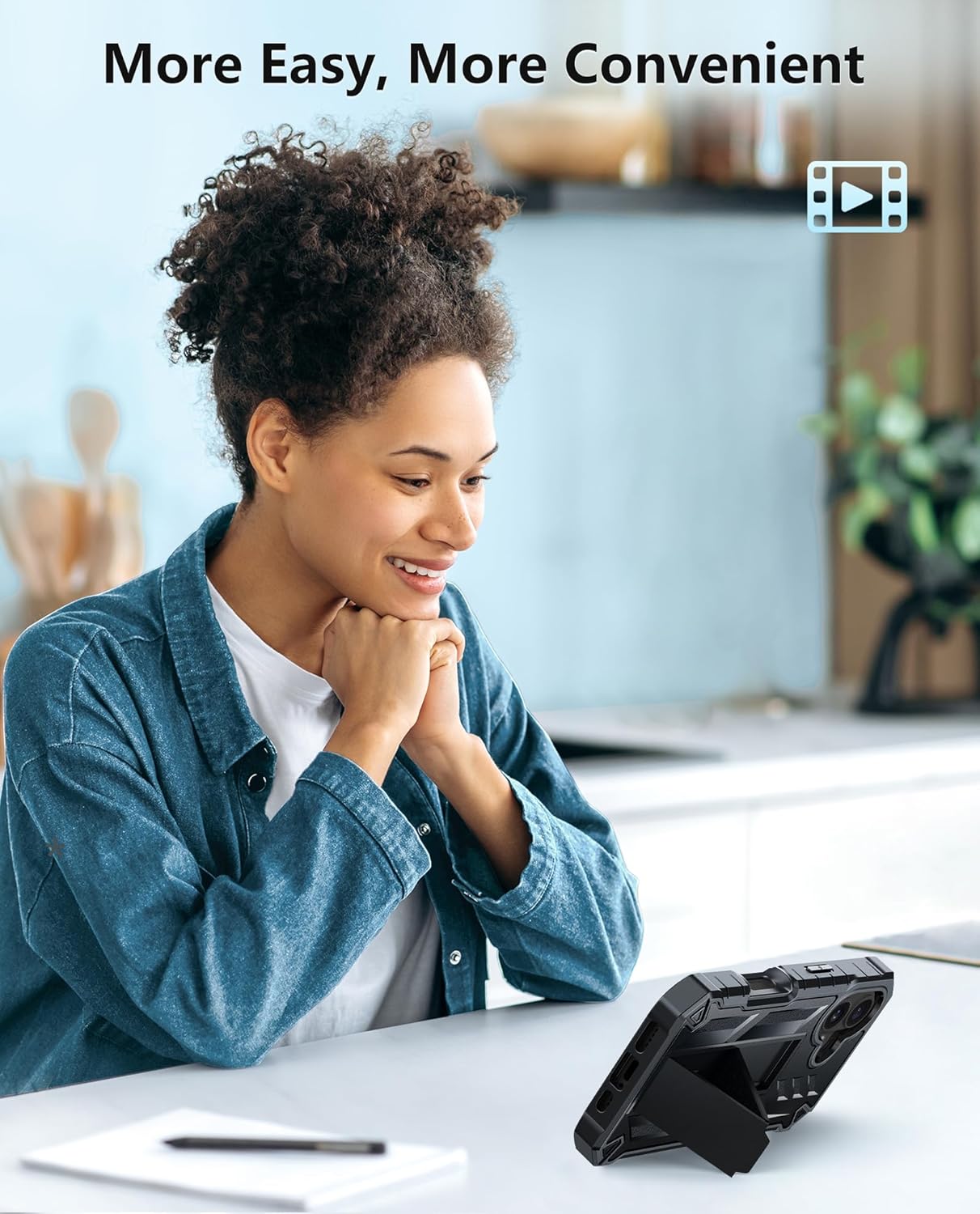Built-in Kickstand: Built-in foldable stand with vertical and horizontal viewing angles free your hands to do other things. The holder on the iPhone 16 case back can provide you with good support, making it easy for you to take pictures with a large cell phone