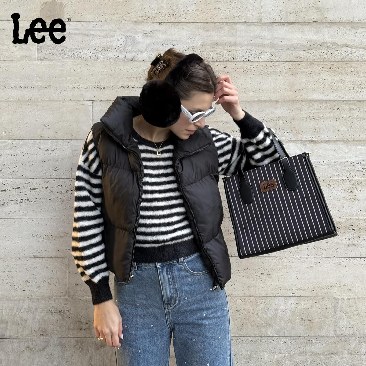 Montana West x Lee Tote Bag for Women Striped Top Handle Handbag with Adjustable Strap