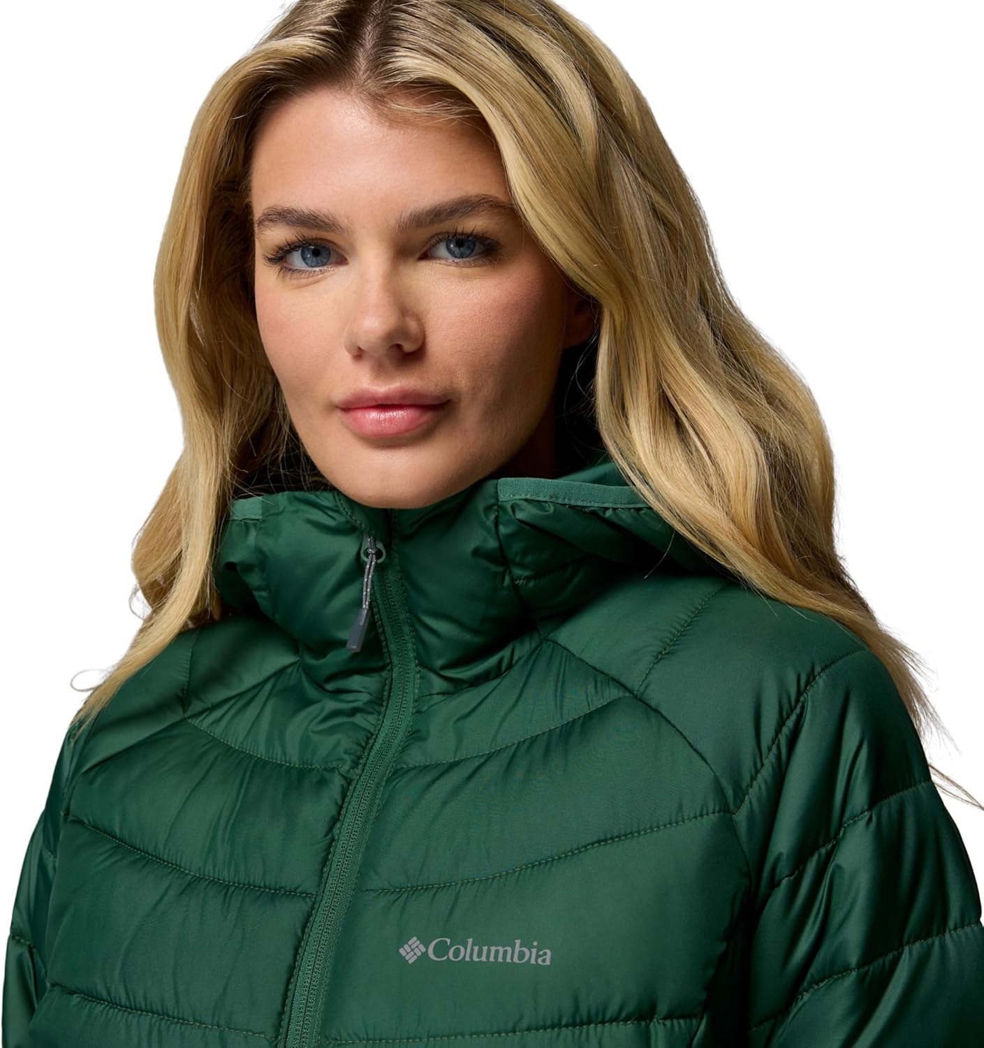 Versatile, lightweight, and warm, this Columbia women’s hooded jacket offers rain-and-stain repellency plus a thermal-reflective lining to keep you protected in light rain or snowfall. It's packed with recycled synthetic insulation and has a two-way front zipper for ventilation and mobility. Columbia offers this jacket in multiple colors and sizes. Extended sizing available. Active fit.