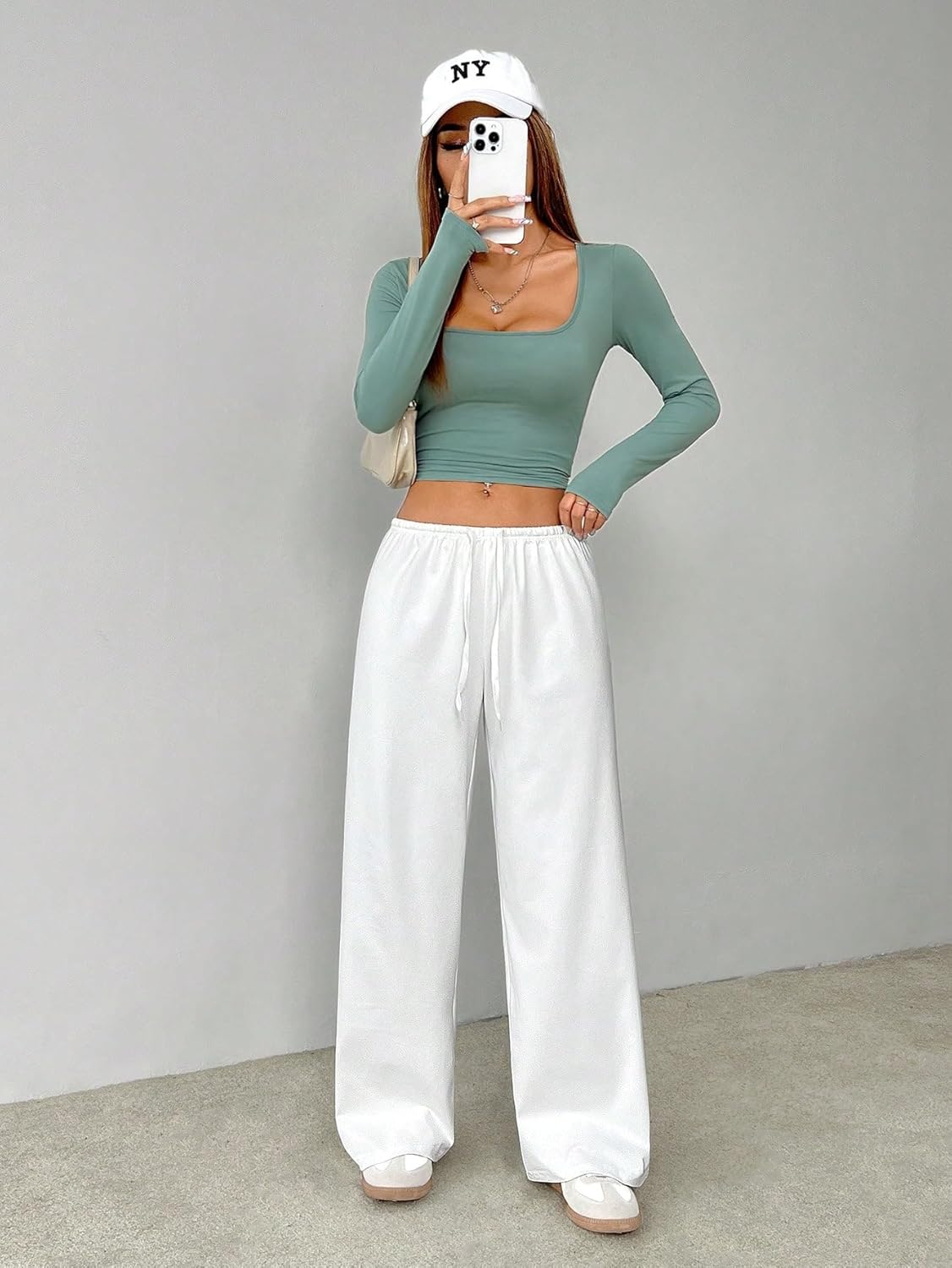 Women's Straight Leg Baggy Pants Drawstring Waist Casual Sweatpants Workout Trousers with Pockets