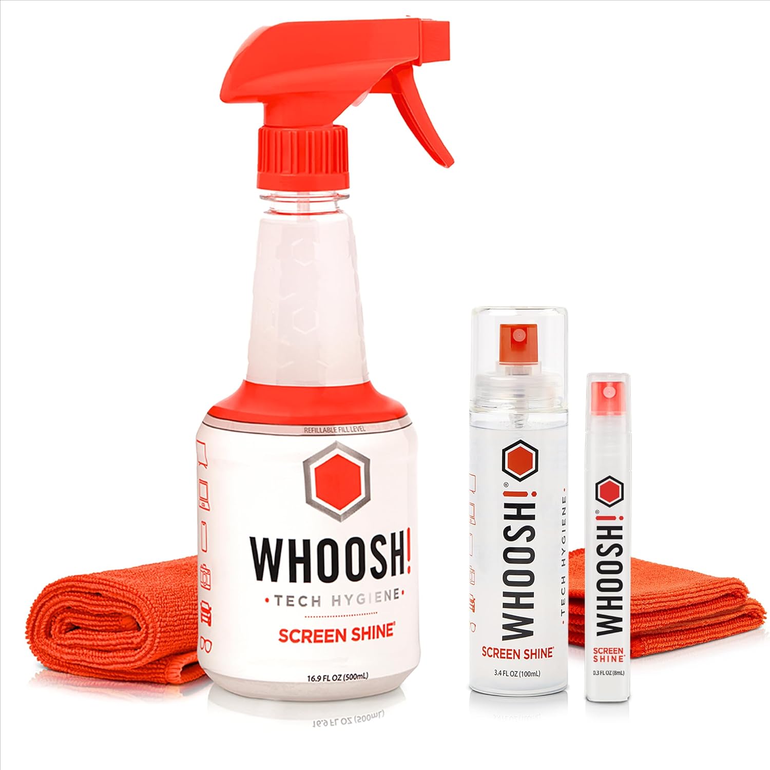 WHOOSH! Screen Cleaner Spray & Microfiber Cloths Bundle | 16.9, 3.4 & 0.3 fl oz + 1 Microfiber Cloth (14x14) + 2 Microfiber Cloths (6x6)