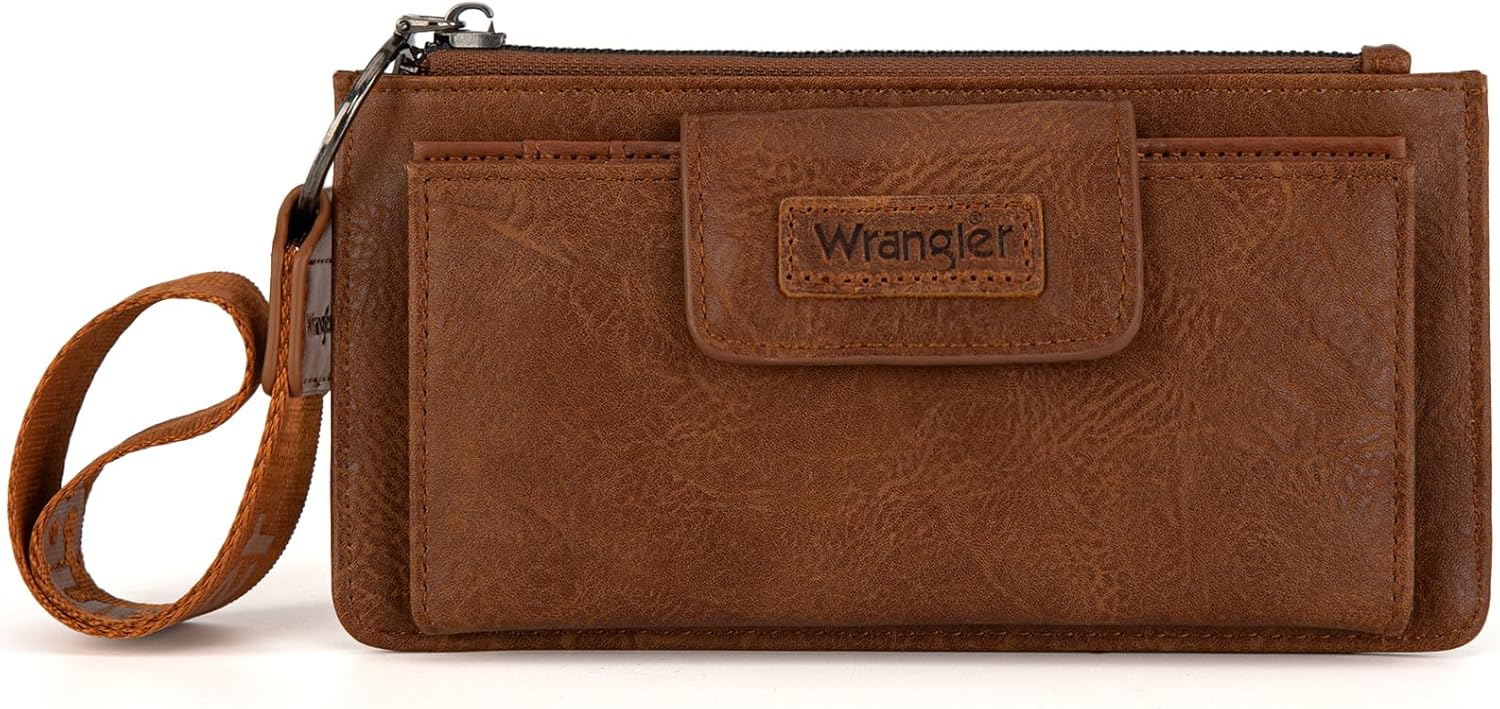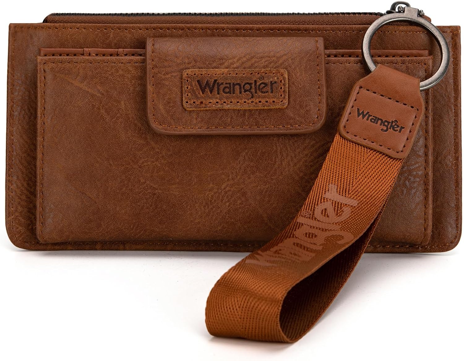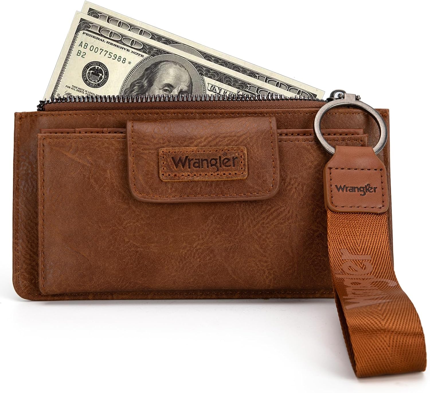 X Wrangler Brown Wristlet Wallet Minimalist Clutch Womens Wallet Rfid Card Cases & Money Organizers with Coin Purse and Smooth Zipper