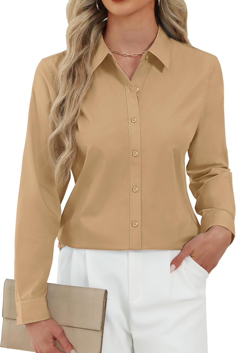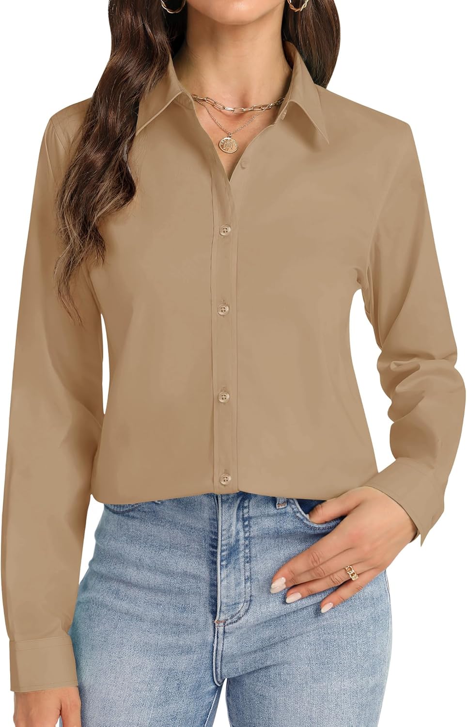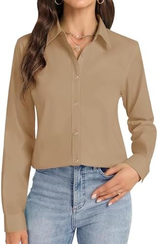 J.VER Button Down Shirts for Women Stretch Collared Cotton Long Sleeve Dress Shirt Business Casual Blouse for Work