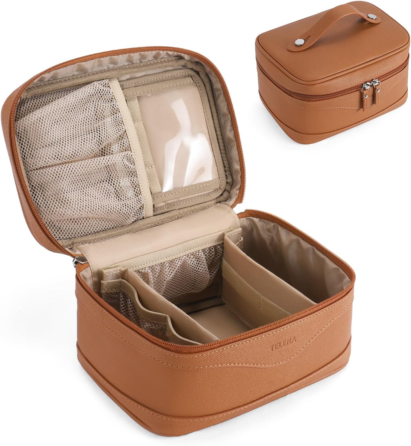 Easy-Clean Material & Generous Capacity - Crafted from durable, wipeable PU leather, this bag resists stains and moisture. The roomy 9.2’’x 6.5’’x 4.8’’ interior holds 15+ full-sized products, and removable components simplify deep cleaning for long-lasting freshness