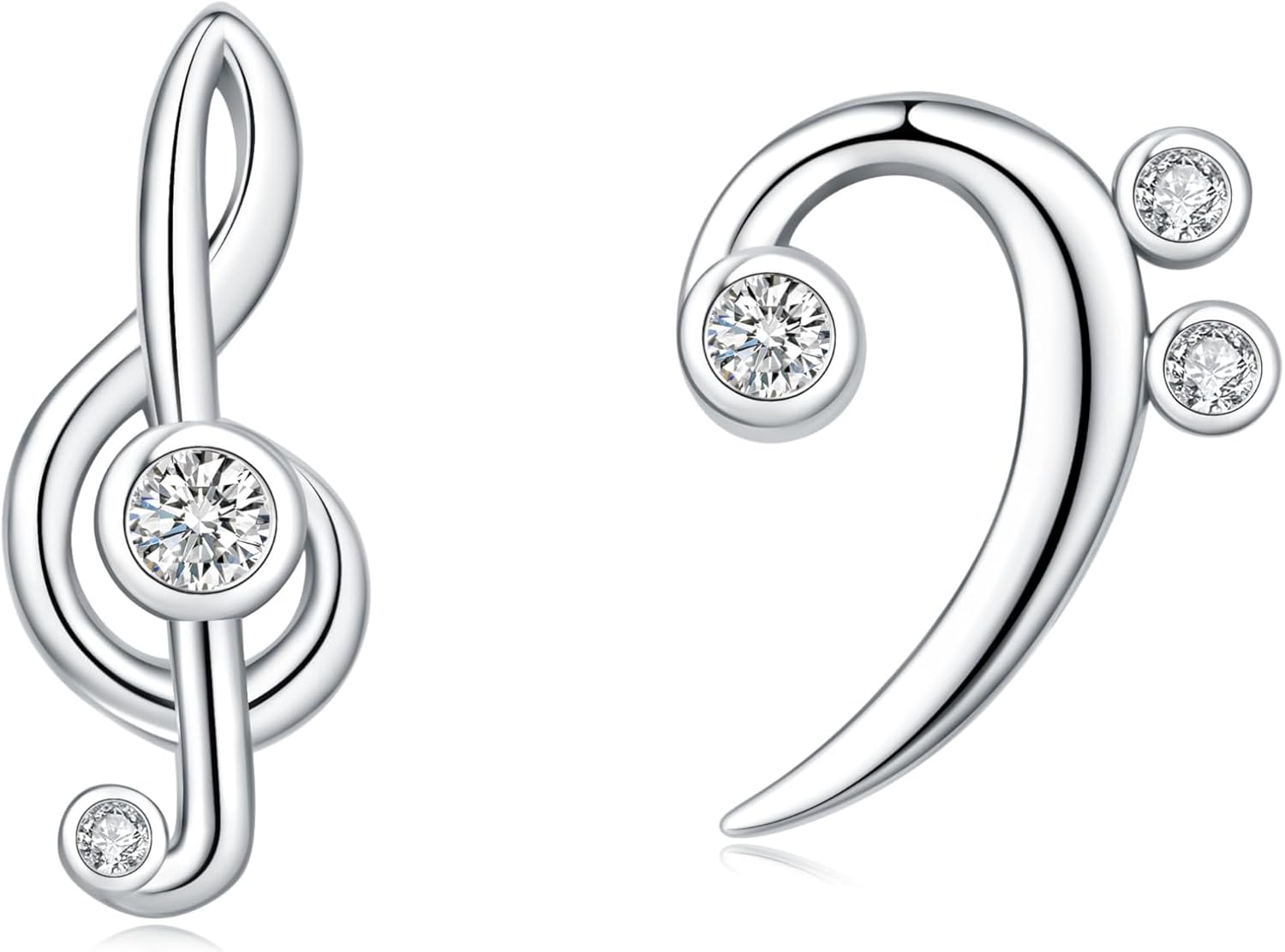 925 Sterling Silver Music Note Earrings Stud Musical Treble Bass Clef Jewelry Gifts Ideas for Music Lovers Women Musician Students