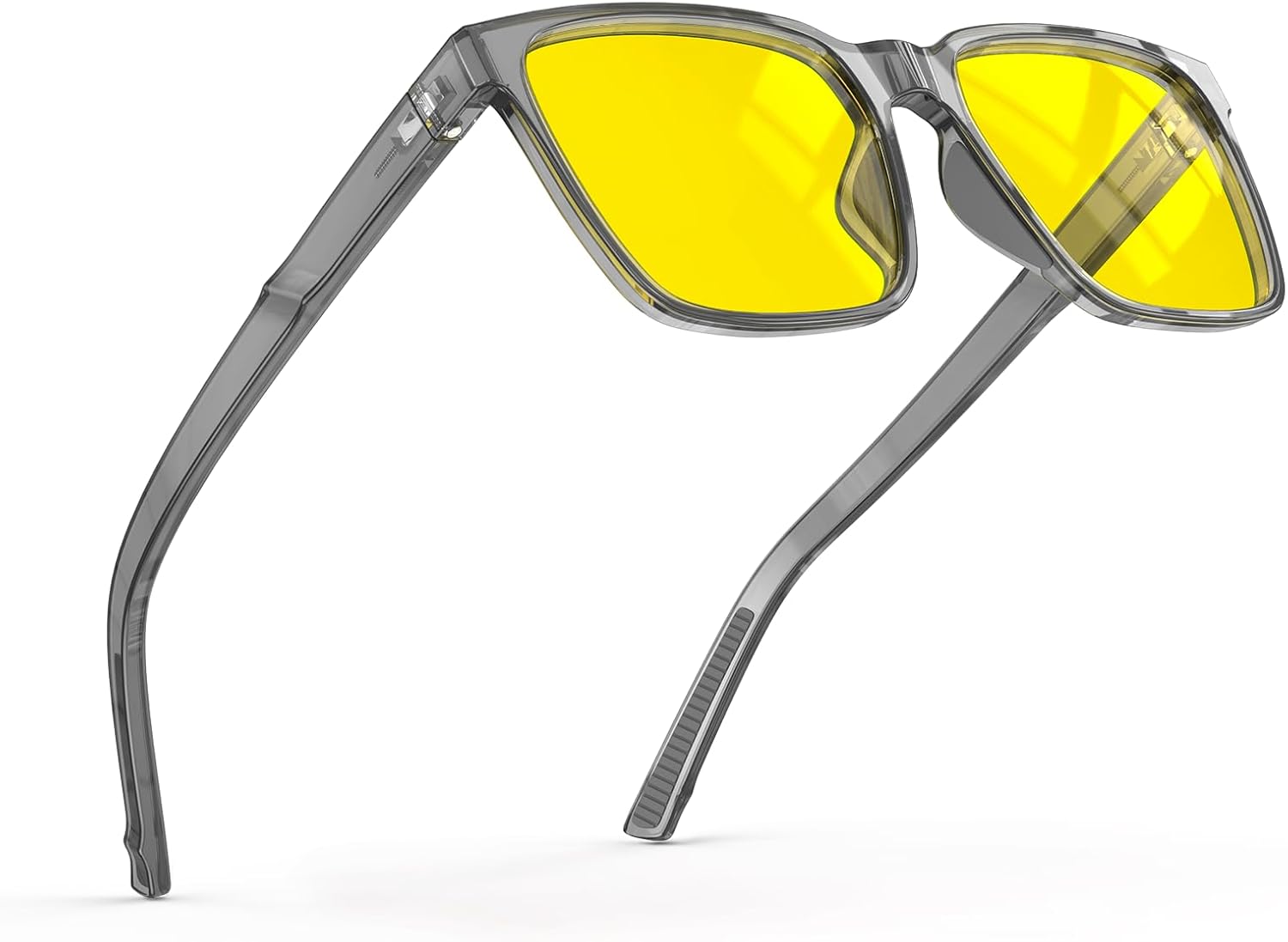 Goiteia Night Driving Glasses Anti Glare from Blue LED Headlights for Truck Drivers, Yellow Glasses, Suitable for Long Drives