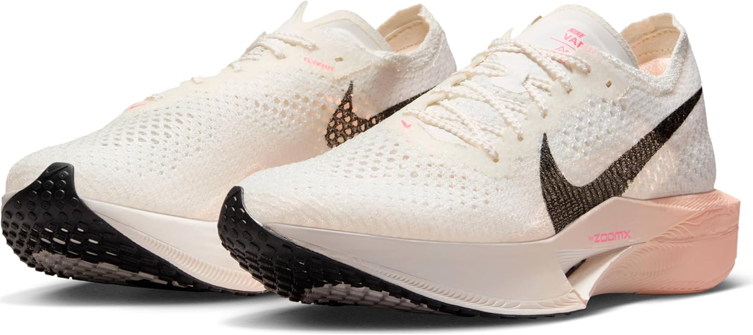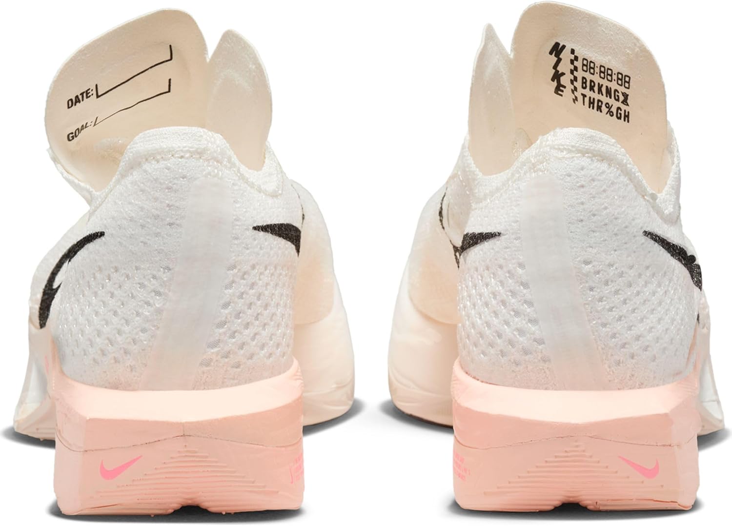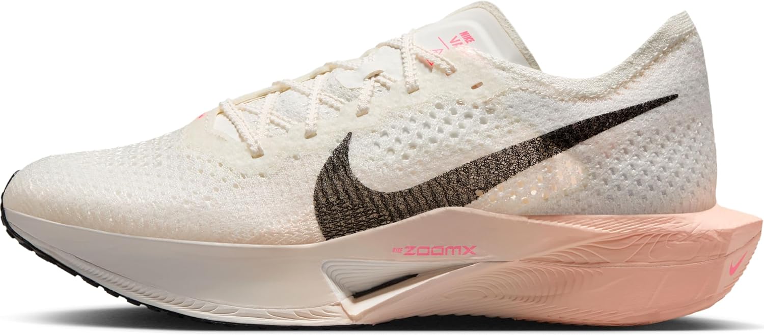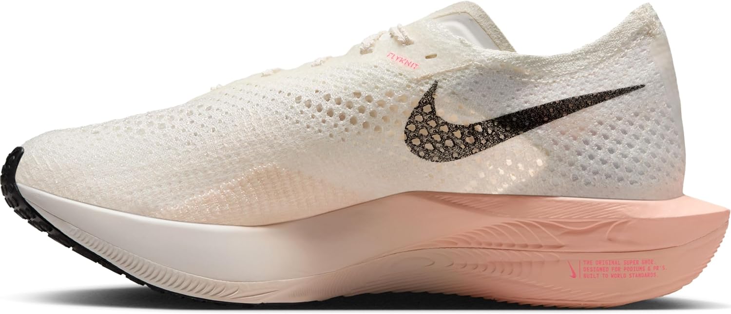 Nike Vaporfly 3 Women's Competition Running Shoe Grab them when you can. The Nike Vaporfly 3 is designed for speed on competition day to overcome any distance. It was designed for chasers, racers and pacers who can't resist the thrill of pursuit. We have revised the super shoe and optimised its drive so that you can achieve personal best performance from the 10 km run to the marathon. This versatile road running workhorse is suitable for anyone who sees speed as a gateway to more miles and seemingly unattainable heights, whether top runners or newcomers. Dynamic running feel The full-length carbon fiber FlyPlate ensures a secure, driving feel while running. Speed for every mile Nike ZoomX, our most responsive foam, is now even better. It runs from heel to toe, allowing even more energy return than before and a springy feel with every step. Stable running feel Do you see the midsole arch at the heel? We have developed them so that less weight is placed on the inside of the foot and you enjoy a more stable running feeling. Airy design Specially selected Flyknit yarns and special forefoot zones give the Vaporfly a new level of performance. A breathable toe area and soft, durable yarns equip the Vaporfly with our perfectly adapted design so far. The result is a softer, cooler design that adapts to your foot. What's new on the Vaporfly 3? The updated, thin rubber on the outsole is designed for less material use without compromising durability. The result is a lighter and not quite as thick outsole. This allows more ZoomX foam to be used under the foot for smoother rolling while running. The lightweight padding on the tab reduces pressure from laces at the arch of the foot. The outsole pattern with waffle profile and perforations saves weight and provides traction on different surfaces in various weather conditions. The offset heel seam reduces friction in the heel area. The wider toe area provides a roomier fit. An integrated foam pad on the heel provides additional cushioning. Offset heel seam reduces friction and skin irritation in the heel area