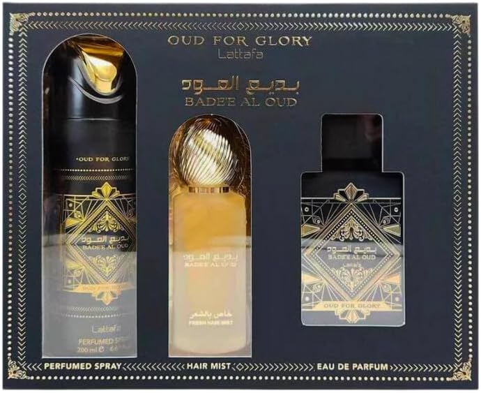 Lattafa Badee Al Oud for Glory 3.4 Edp U + 6.7 Body/Spray + 1.7 Hairmist (131010)