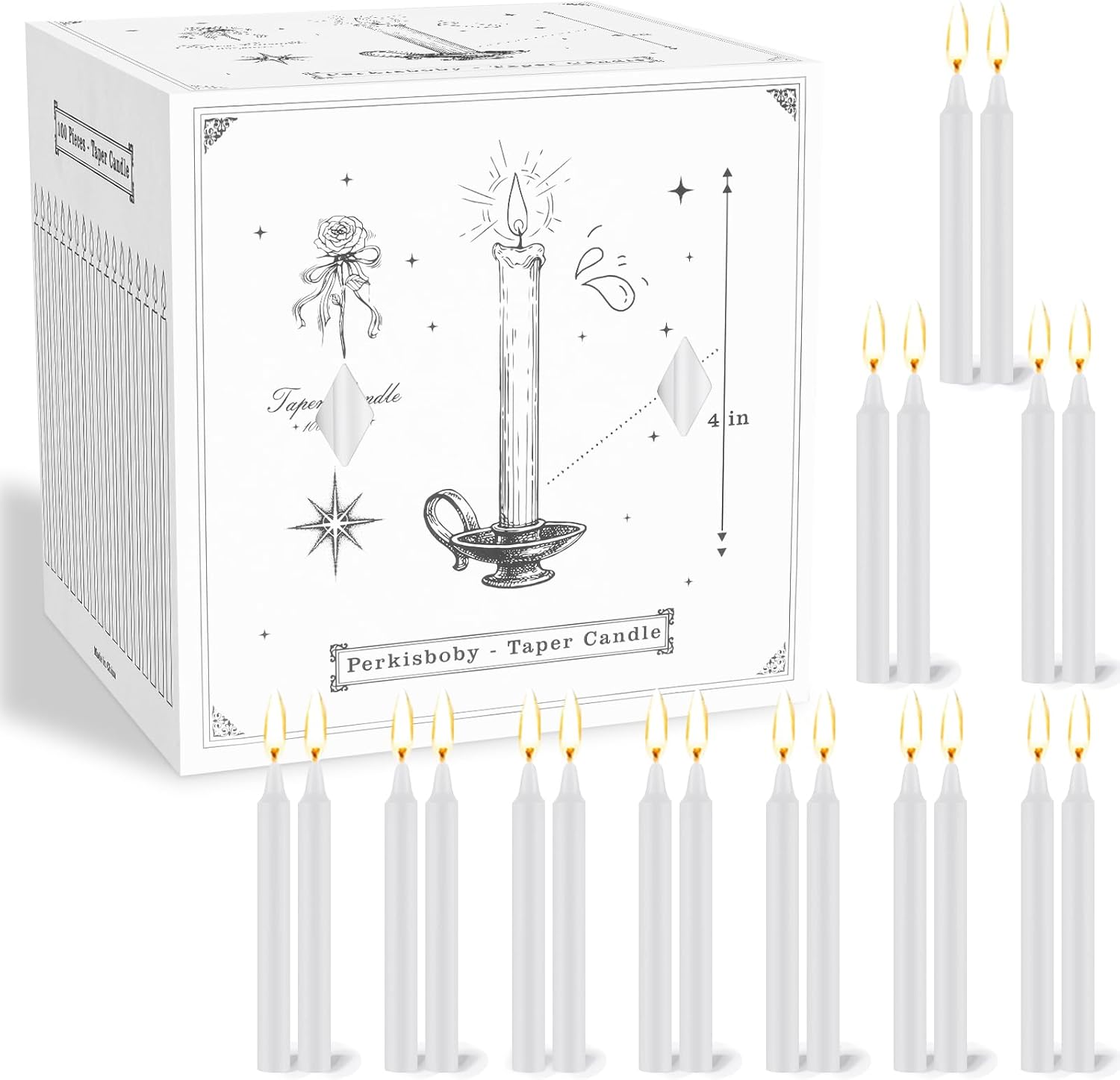 【Illuminate with Purity】This taper candle set includes 100 white candles, perfect for bringing a sense of elegance and tranquility to any setting. Light these graceful white candles to create a soft, inviting ambiance, filling your space with a gentle, comforting glow that enhances any occasion.