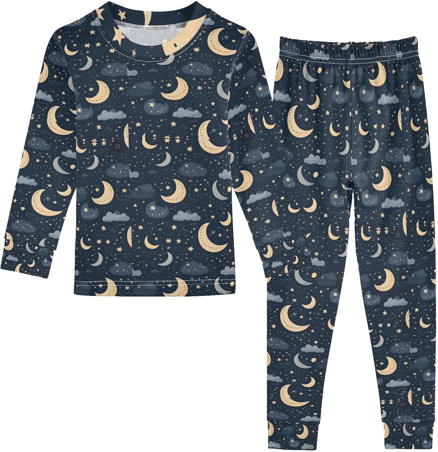 ALAZA Indian Style Seamless Le Moon Sun Stars Pajamas Set Snug-fit Long Sleeve Sleepwear,18 M