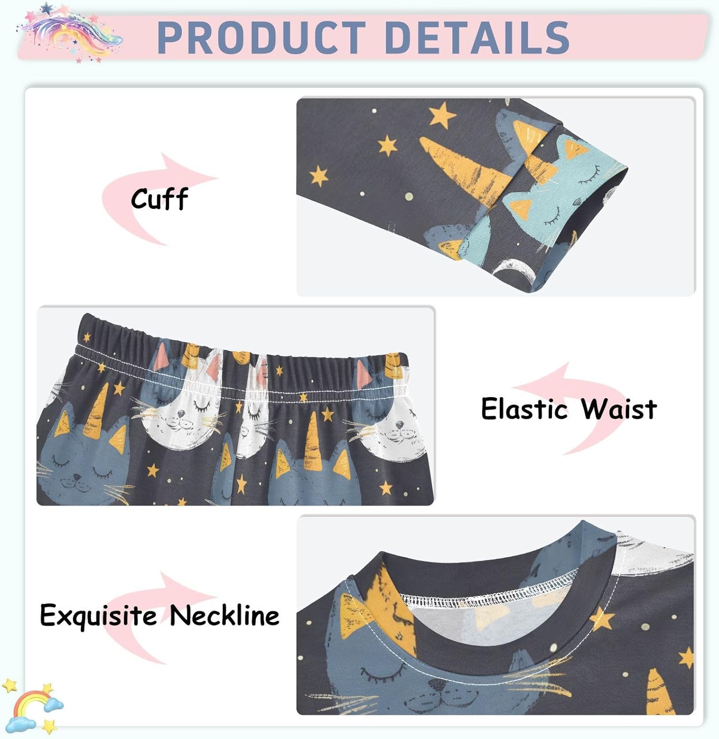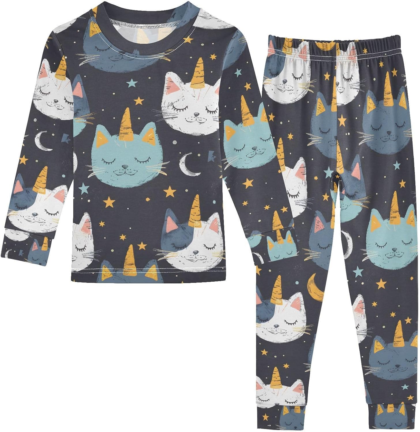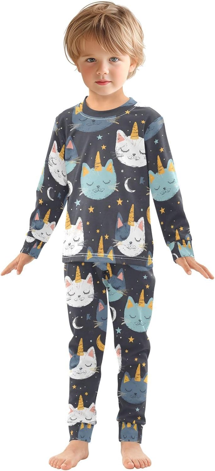 ALAZA Cats Are Unicorns Stars Pajamas Set Snug-fit Long Sleeve Sleepwear,18 M