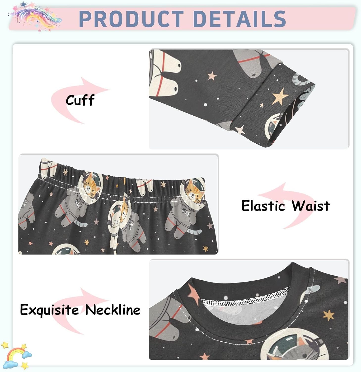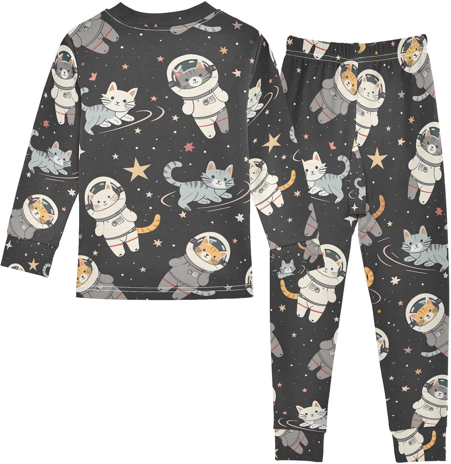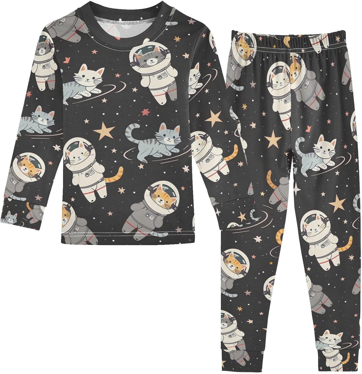 ALAZA Astronaut Cats with Stars Pajamas Set Snug-fit Long Sleeve Sleepwear,18 M