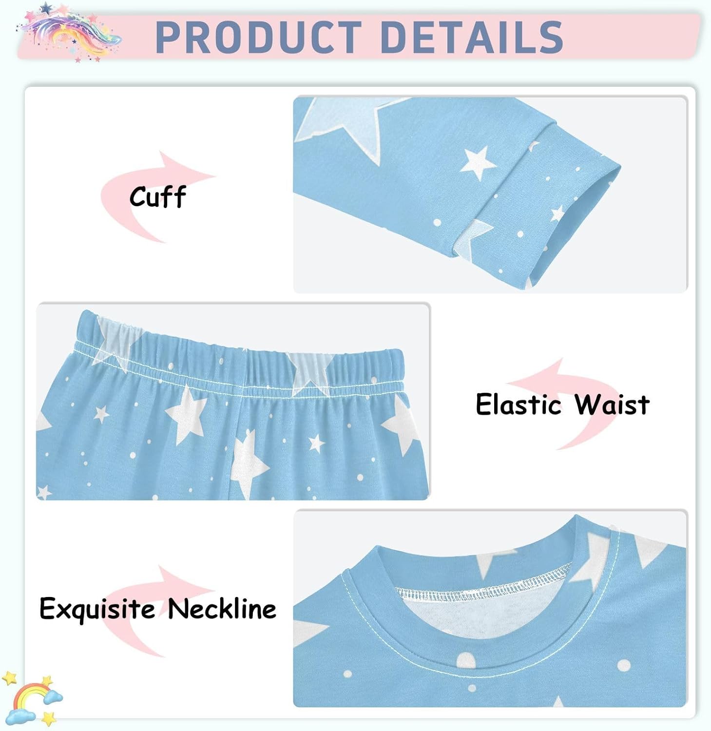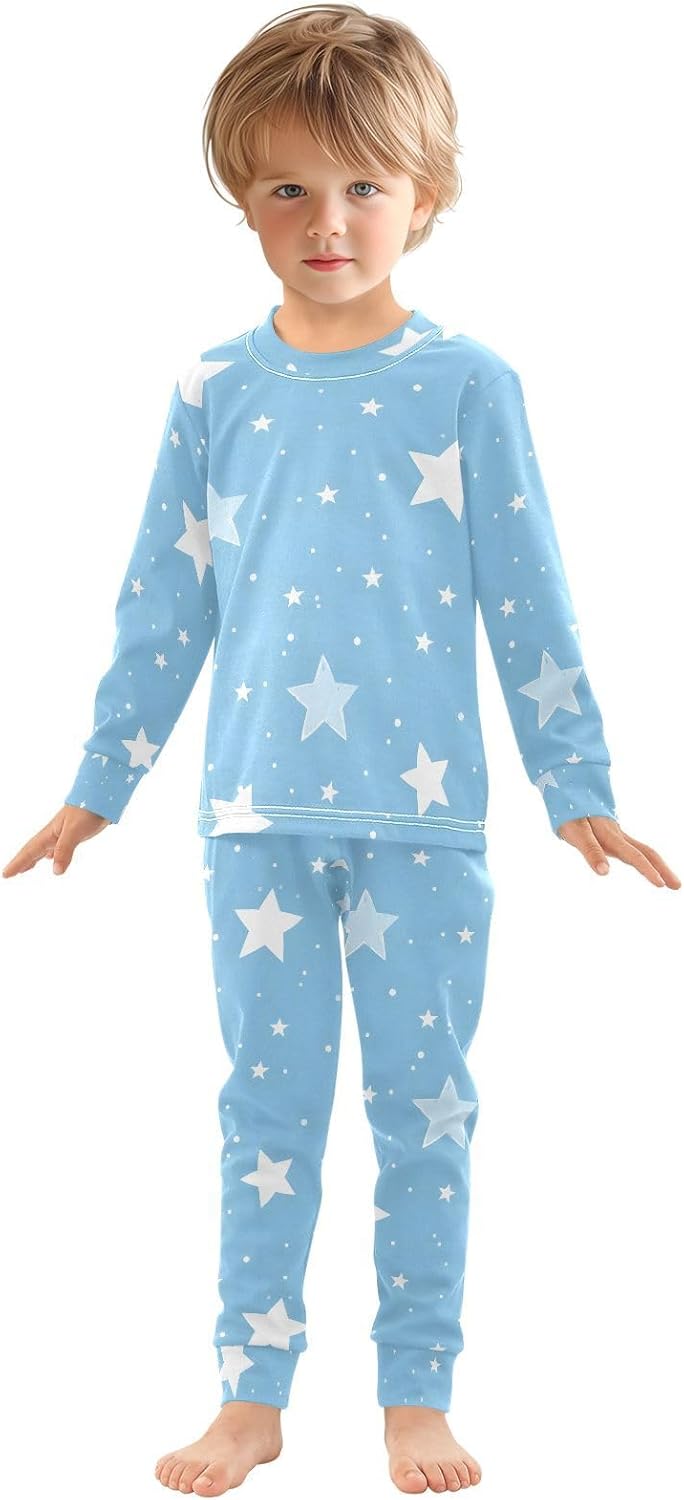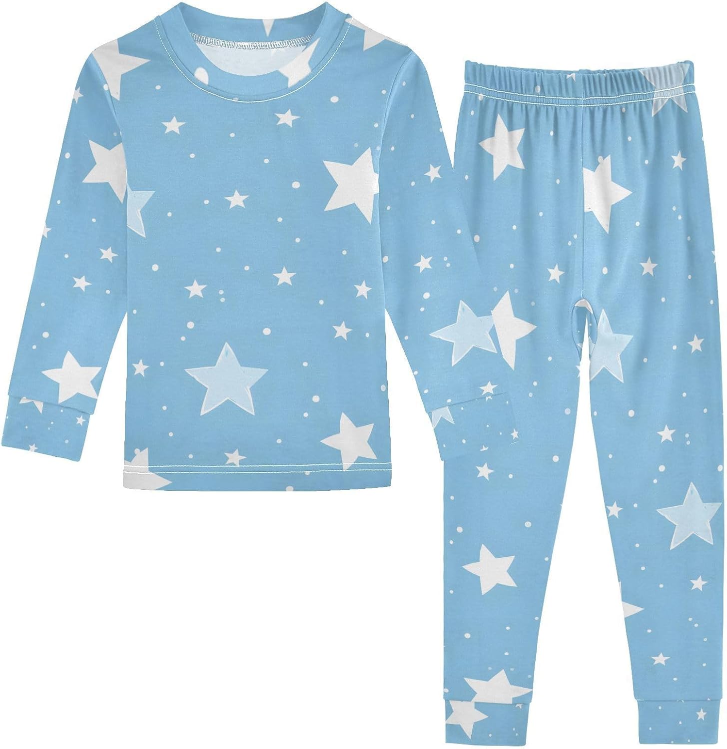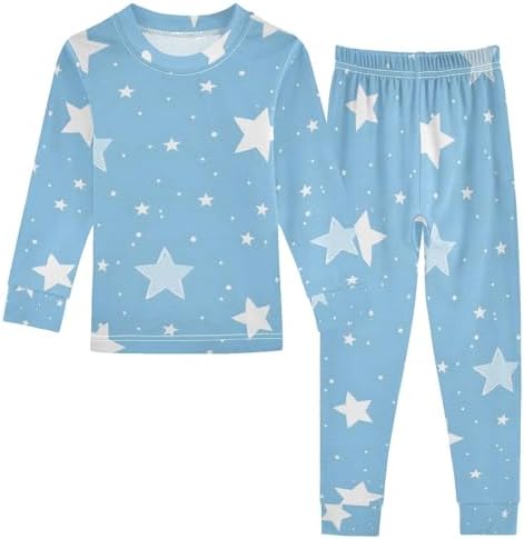 ALAZA Light Blue and White Stars Pajamas Set Snug-fit Long Sleeve Sleepwear,18 M