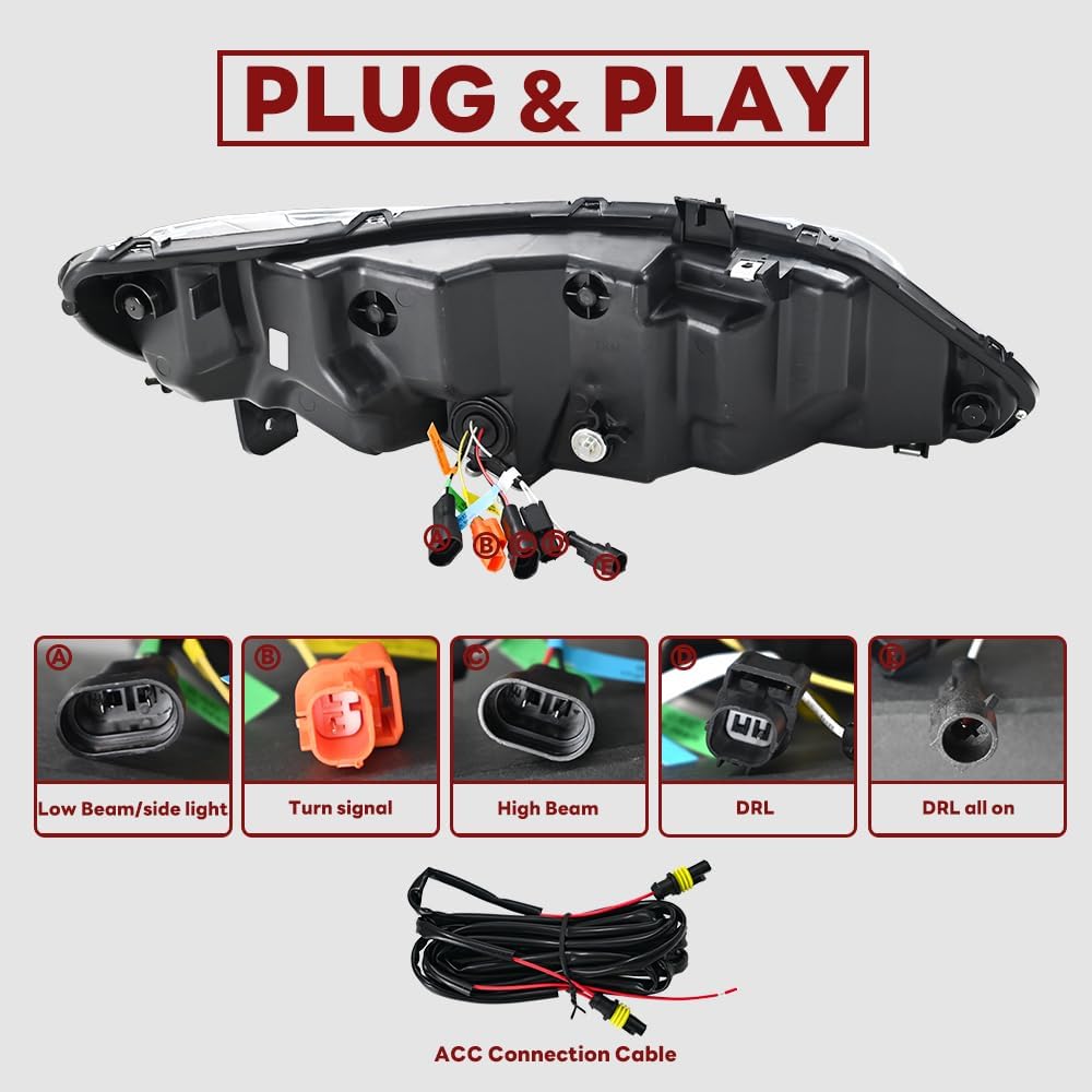 ⚡Compatibility - COOLCMP Head lamp fit for 2006-2011 Honda Civic 4 Door sedan models. The frontlight with customized design is perfectly matched with your car.