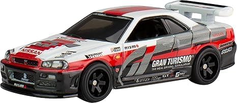 Experience the thrill of the Gran Turismo racing simulation with this Hot Wheels Nissan Skyline GT-R BNR34 die-cast car. Meticulously crafted with attention to detail, this 1:64 scale model captures the iconic lines and livery of the legendary Nissan Skyline GT-R from the popular video game series. Featuring a sleek red and white paint scheme with Gran Turismo branding, this collectible is a must-have for fans of the franchise and automotive enthusiasts alike. Crafted from high-quality materials, this Hot Wheels Real Riders edition boasts authentic rubber tires and metal body construction for a premium look and feel. Whether you're building your dream garage or simply admiring its striking design, this Nissan Skyline GT-R BNR34 is sure to be a centerpiece in your collection. Collect them all and relive the excitement of the virtual racetrack.