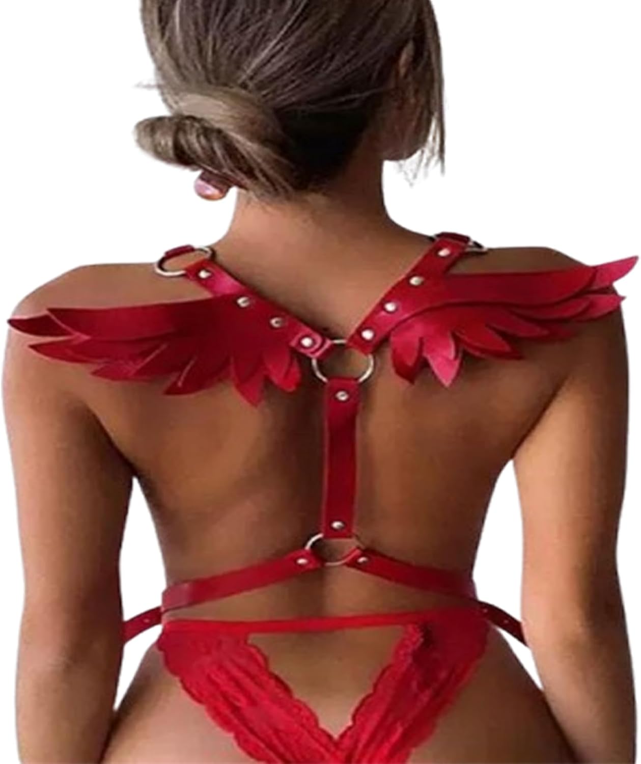 Women's Body Chest Harness Belt with Angel Wings, Body Caged Neck Waist Harness Bondage Strap for Ladies