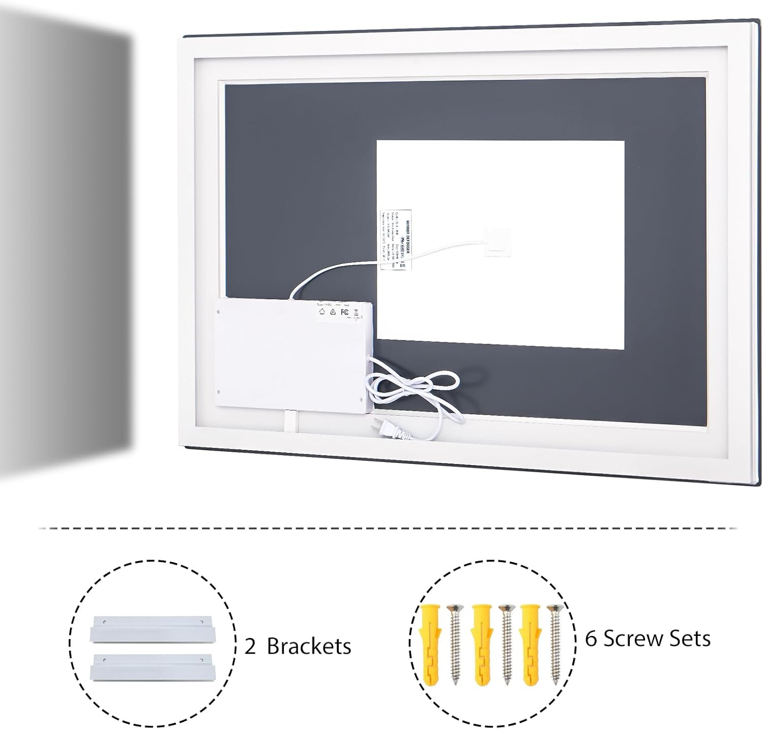 Easy Installation: The bathroom vanity mirror with lights is supplied with mounting kits and installation diagrams that makes it simple to install. Fix the hook on the wall, align the groove on the back of the bathroom mirror with the hook, and hang the LED mirror to complete the installation. If you encounter any difficulties, you can also seek our help