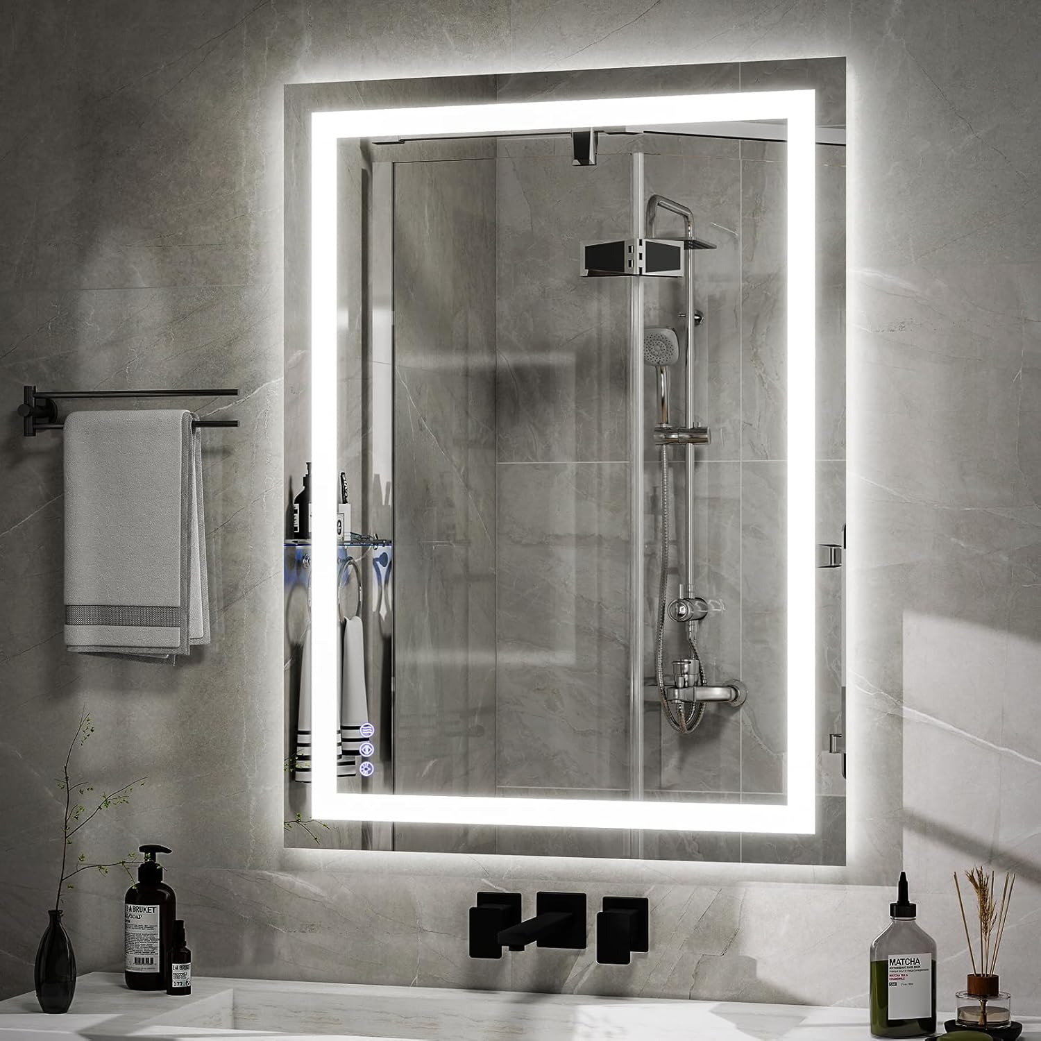 LED Bathroom Mirror 26 x 38 inches - 3 Adjustable Lighting Modes Lighted Smart Bathroom Vanity Mirror, Anti-Fog, Memory Function, Tempered Glass, Wall Mounted Horizontally Vertically