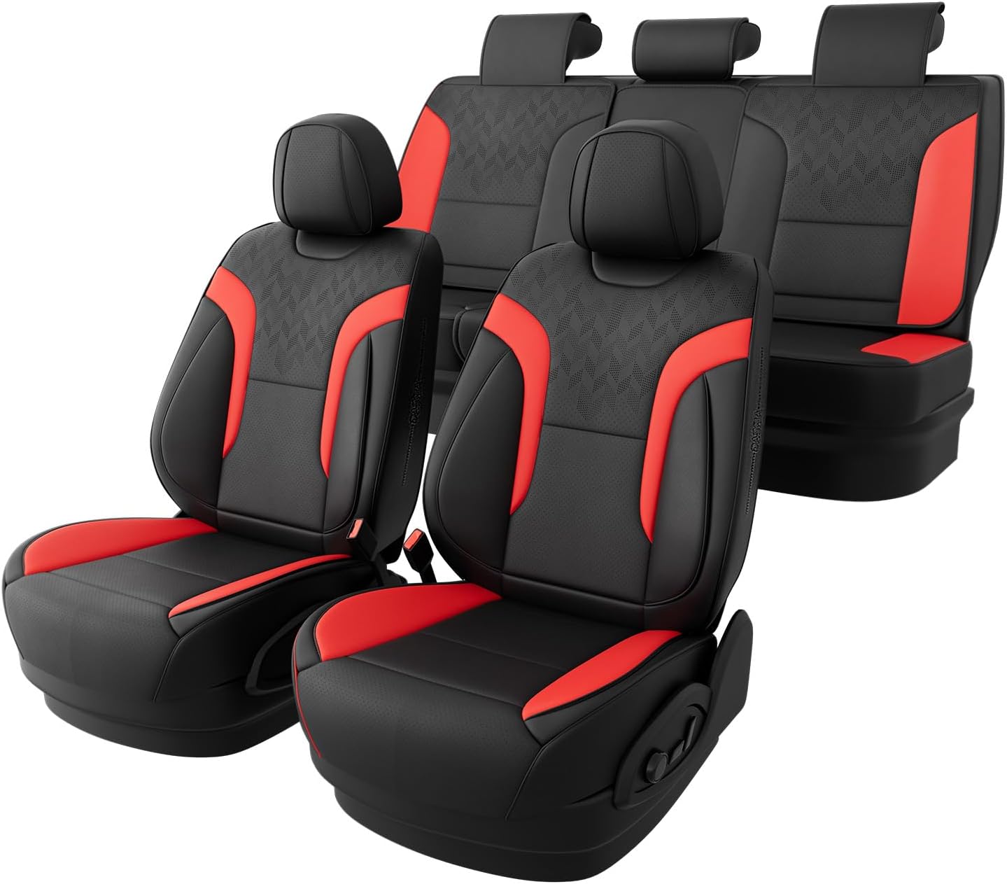 Black and Red Car Seat Covers Full Set - Breathable Faux Leather Universal 5 Seat Covers for Cars, Automotive Protector Fit for Most Sedan SUV Pick-up Truck