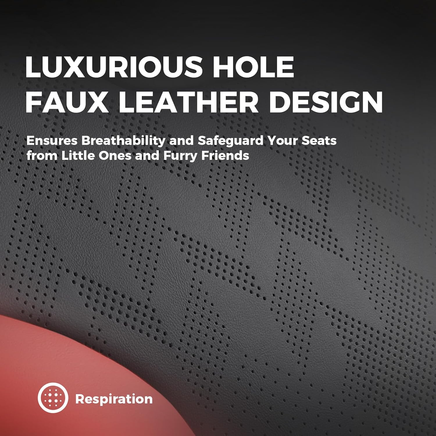 Luxurious Materials - Elevate your driving experience with our premium upgraded composite faux leather. Enjoy a soft, comfortable touch that’s waterproof and built to last. Featuring over 25,000 breathable holes, our seat covers not only enhance airflow but also add a sophisticated touch to your car's interior. Cleaning is effortless—just wipe away stains with a damp cloth