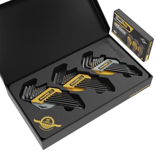 GrenPRO hex key set has a long -arm design and ball head design. The long -arm design provides a longer stretch range and enhances leverage and torque. Ball-end design allows entry angle of up to 25 degrees for easily reaching around obstructions