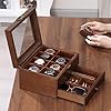 2-Layer: The upper layer can hold 8 watches, and the bottom drawer offers additional storage for watchbands, cufflinks, bracelets, rings, pens, necklaces, and other jewelry, keeping them in one place and protecting them against dampness, vibration, friction, or loss