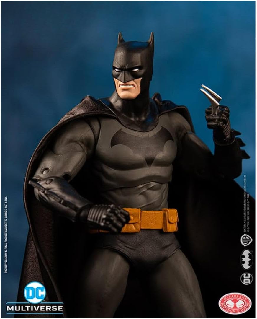 "The Cowardly Lot a thrill-packed, dangerous story. Is the new gang in Gotham connected to the resurgence of the Scarecrow? Meanwhile, Mayor Nakano meets with shadowy billionaire Simon Saint, who comes to Gotham to pitch the concept of an advanced law-enforcement project known as... the Magistrate! Its always darkest before the dawn, especially in Gotham City! Features: #Incredibly detailed 7” scale figure based on the DC Multiverse #Batman as featured in DC comics #Includes collectible art card with character art on the front, and character biography on the back #Designed with Ultra Articulation with up to 22 moving parts for full range of posing and play #Accessories include 2 alternate hands with sculpted batarangs and figure display base #Collect all McFarlane Toys DC Multiverse figures"