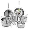GreenPan11 Piece Stainless Steel Cookware Set, Induction Ready, Measurement Markings, Dishwasher & Oven Safe 600F, Pots & Pans, Sauce, Saute, Frying Pans, Silver