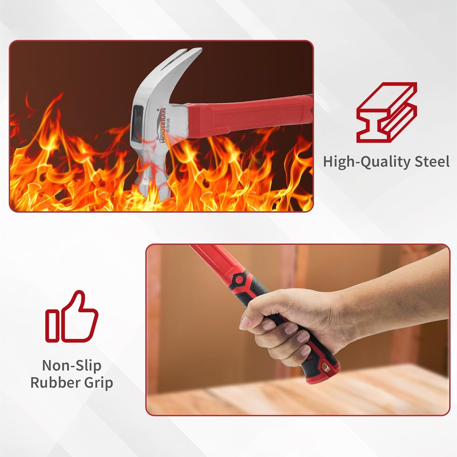 Durable Construction:Made of 45# carbon steel, this 24oz heavy-duty hammer offers excellent hardness and wear resistance.