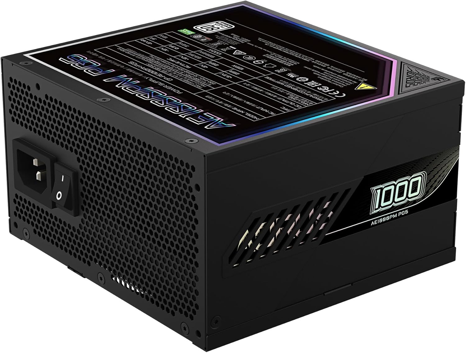AORUS ELITE Power Supply, 1000W, PLATINUM 80PLUS, FULLY MODULAR, Smart 120mm Fluid Dynamic Bearing (FDB) Fan, OVP/OPP/SCP/UVP/OCP/OTP, 10yr Warranty, PCIE5 Compliance (12+4pin), ATX 3.0