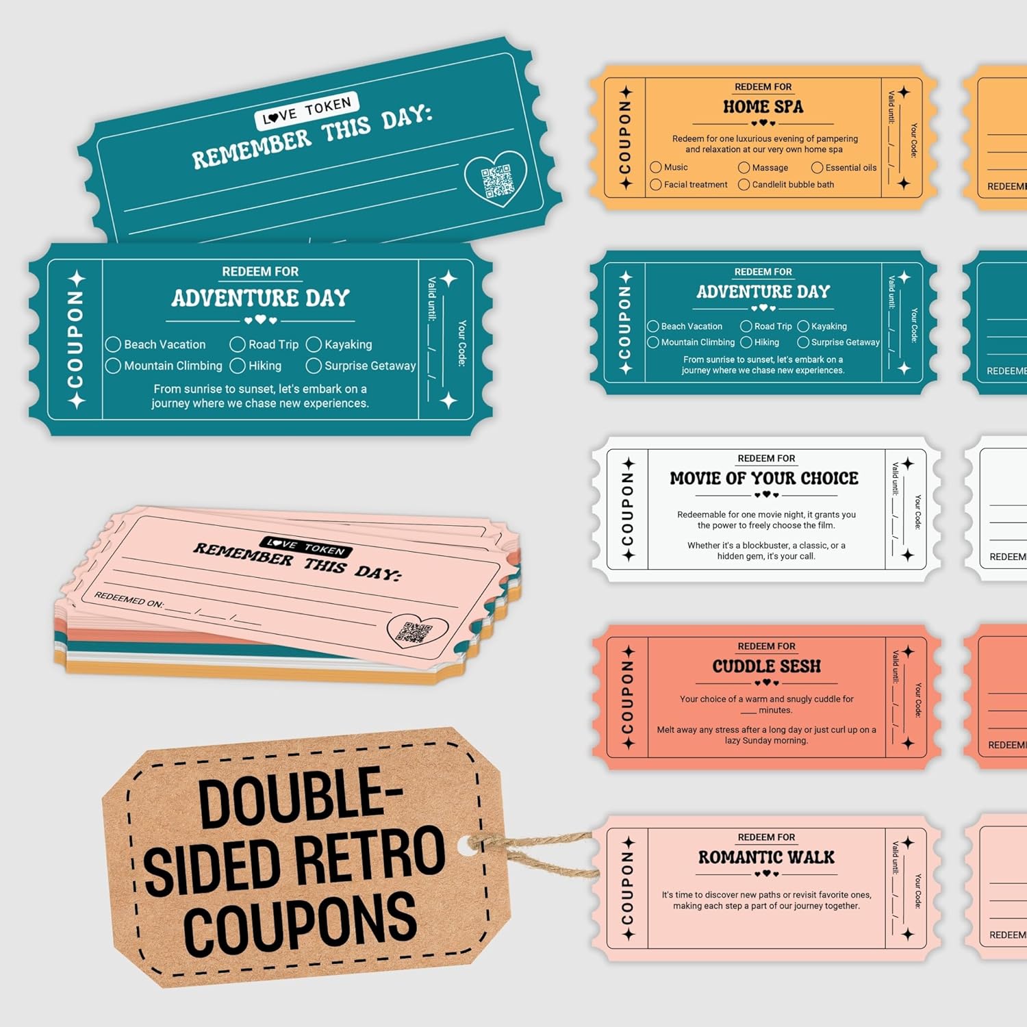 Create Memorable Moments: These versatile couples coupon tickets are perfect for planning romantic surprises, fun date nights, or as part of a couples date book. Great for occasions like birthday vouchers or anniversaries.