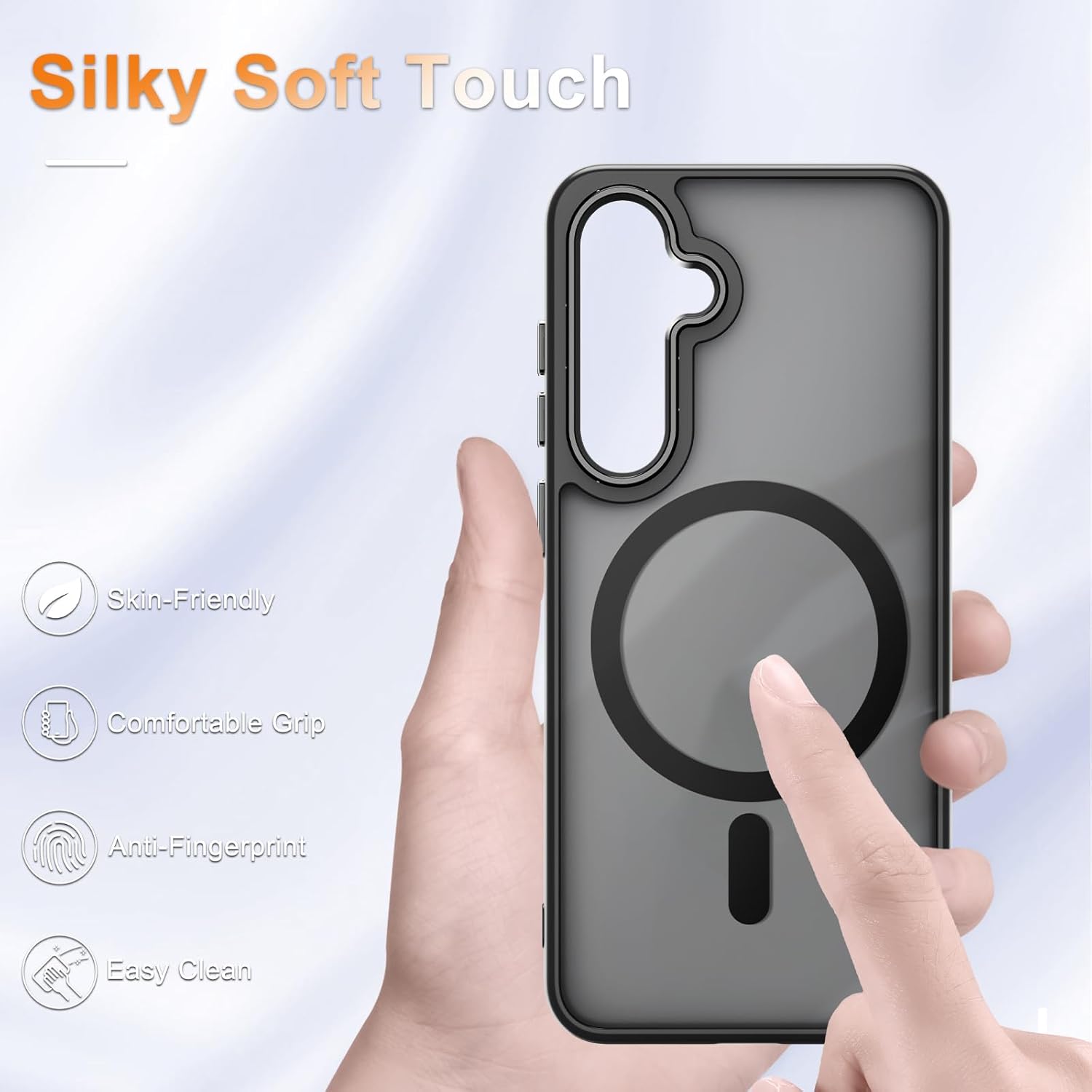 for Samsung Galaxy S25+ Plus Case, Matte Magnetic Phone Case with 1 Screen Protector, Support for Magsafe, Translucent Frosted Shockproof Protective Cover for Samsung Galaxy S25+ Plus, Black