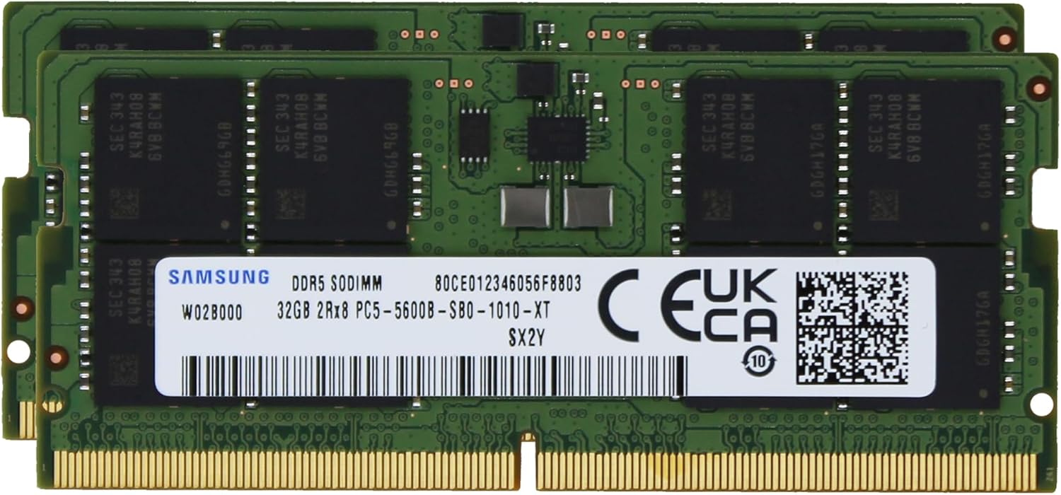 64GB ( 32GBx2 ) DDR5 5600 MHz Non-Parity/Non-ECC Unbuffered SODIMM DRAM Notebook Memory 262 pin Dual Rank Module.