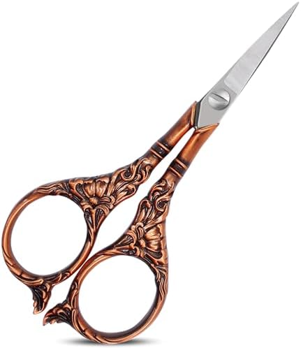 BIHRTC 4.5Inch Vintage Crochet Embroidery Scissors Small Sharp Pointed Stainless Steel Scissors for Sewing Craft Needwork Needpoint Artwork DIY Tool Scissor Bronze Scissor