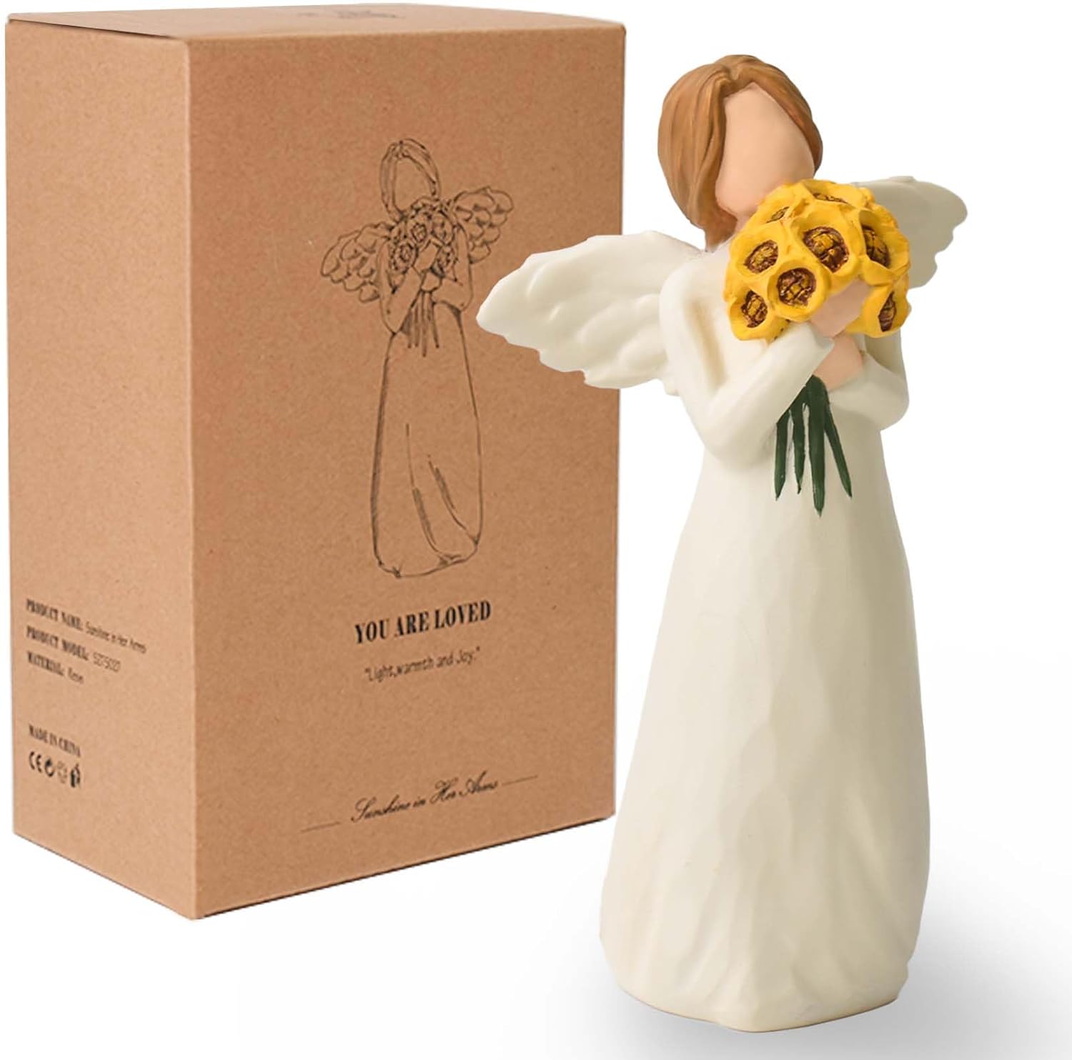 Sunflower Gifts for Women: The 5.9 inch angel sunflower statue is made of resin, hand carved and colored, every detail is lifelike , can be treasured for years