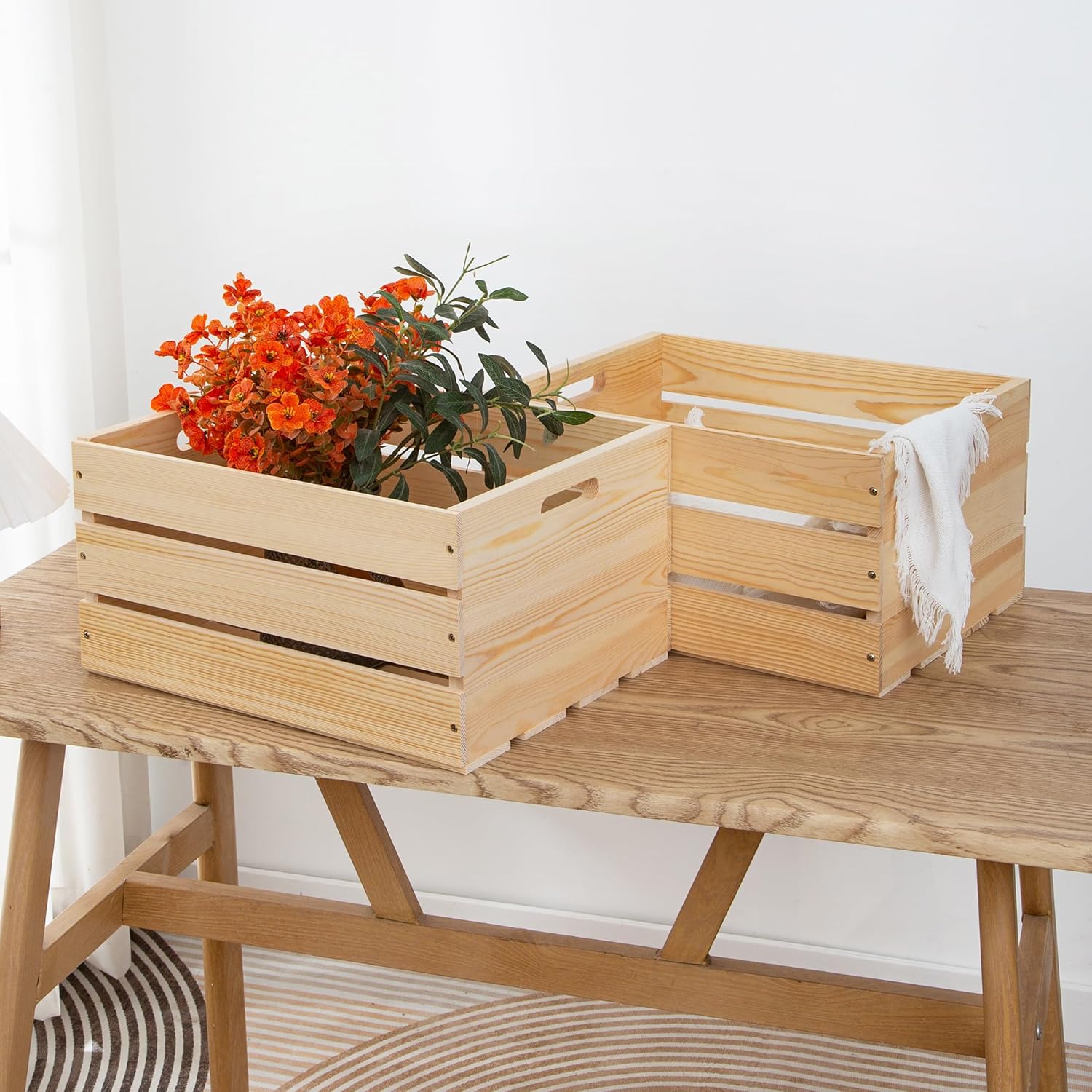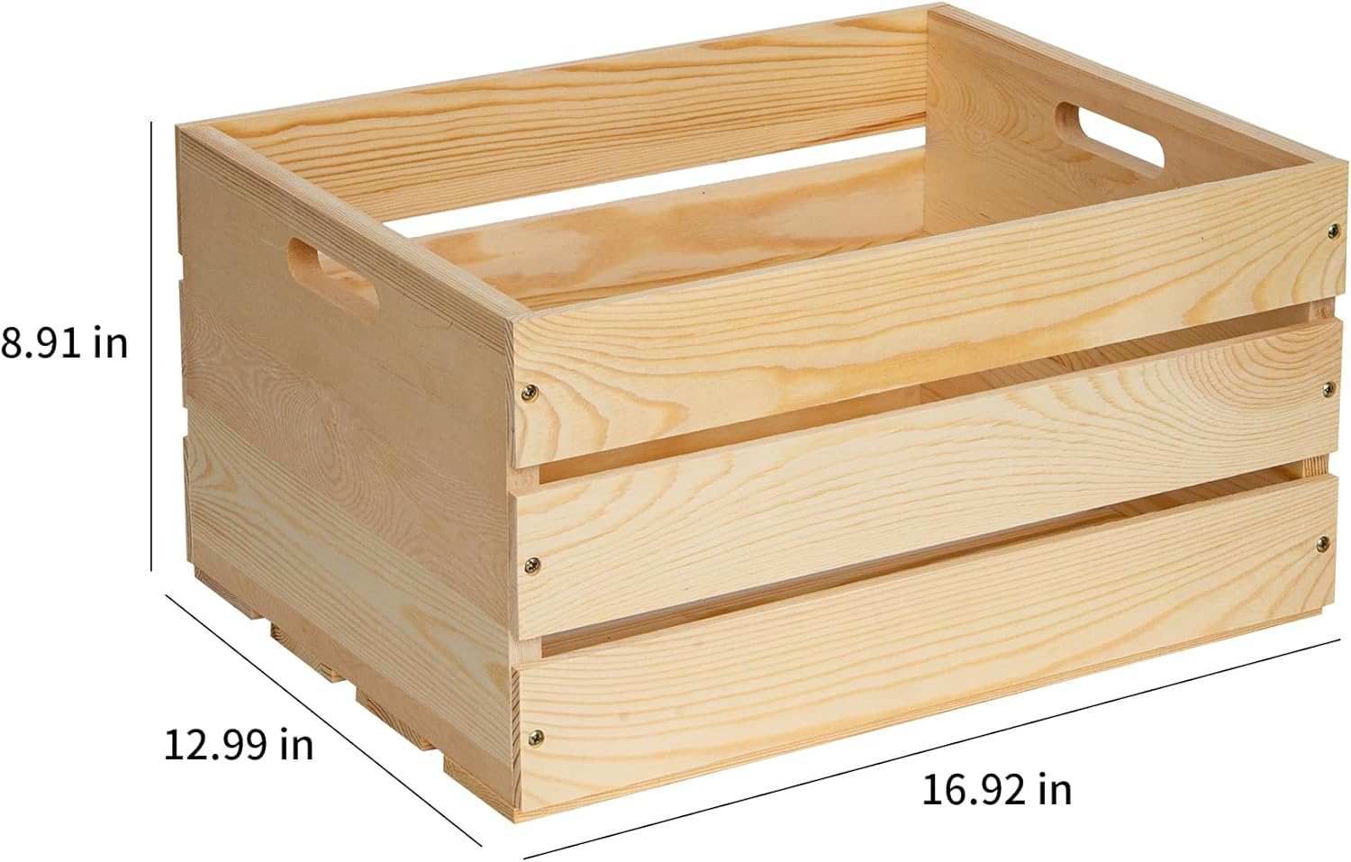 1 Piece Large Pine Wood Crates For Storage, Unfinished Natural Wooden Crates, 17" x 13" x 8.9"