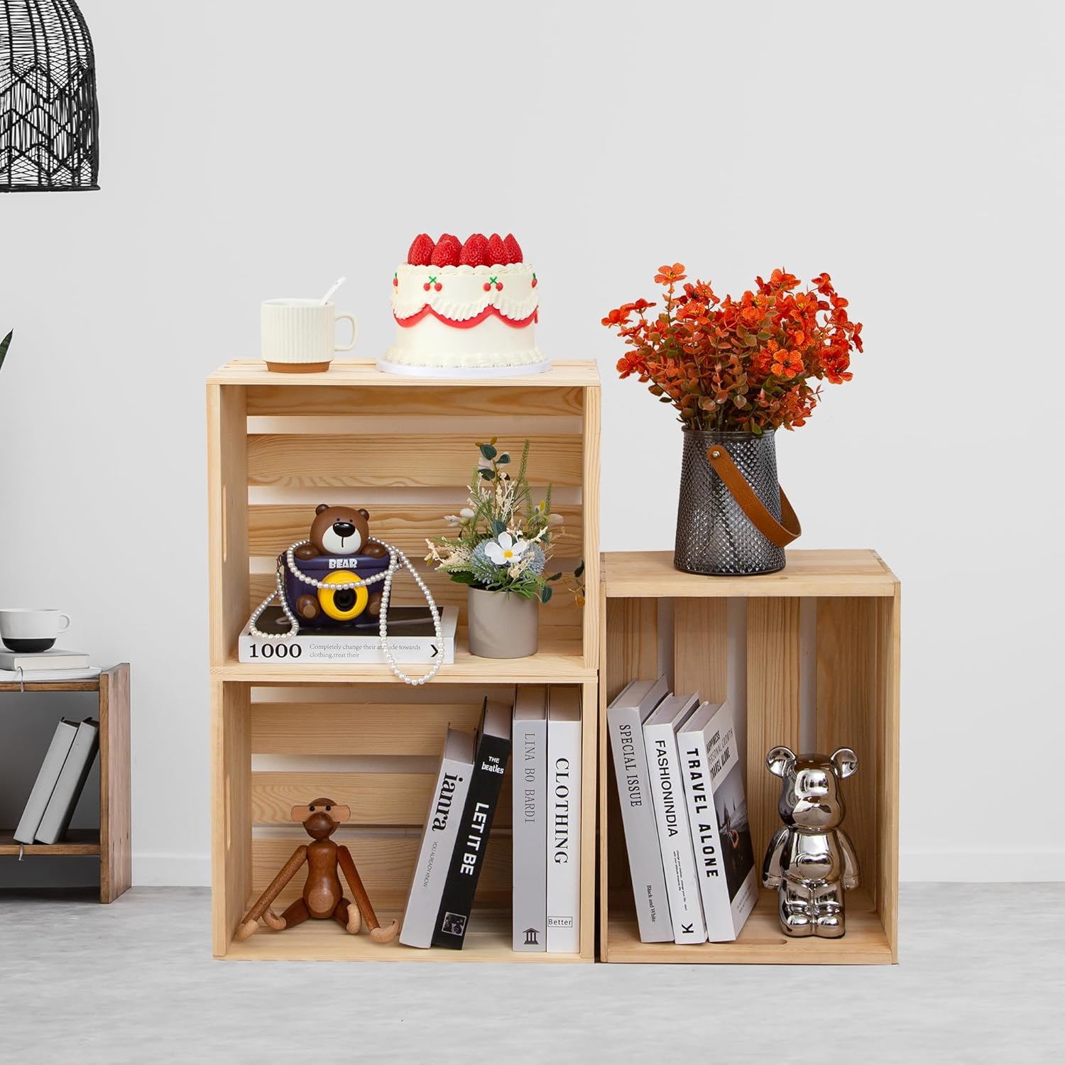 【Widely used】:Our solid wood crates can storage most of the items in the home and can also be stacked together as bookshelves. Our unfinished wooden crates are all original colors, you can use your imagination to paint the colors and patterns you want on them. Not only can it be stored, but it can also decorate and embellish your life,You can place them in the bedroom, living room, kitchen, study, office, store, and other places you think are suitable.
