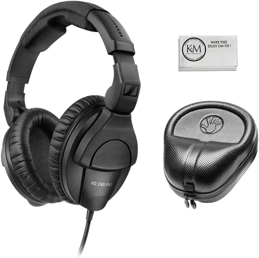 Sennheiser HD 280 Pro Circumaural Closed-Back Monitor Headphones Bundled with Full-Sized Headphone Case + Cleaning Cloth (3 Items)