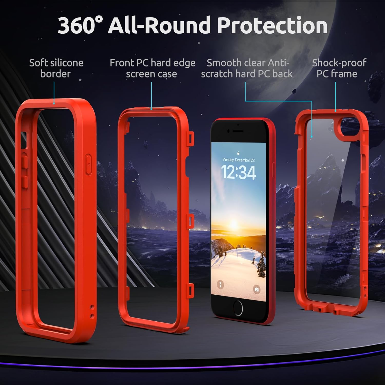【Military Grade Drop Protection】This case is designed with a 3-in-1 structure. The frame of the case is made of high quality soft silicone, which provides perfect shock protection for your phone when dropped from any angle. The interior is made of hard pc bonding to keep your phone securely in place and double protection - Anti-scratch, Anti-impact. perfect design to give your iPhone SE 3rd/2nd 360° full body protection