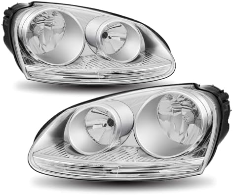 Headlights Assembly for 2005 2006 2007 2008 2009 2010 Volkswagen VW Jetta, 08-09 Jetta Wagon /06-09 VW Golf Rabbit Replacement Headlamp Pair, Chrome Housing
