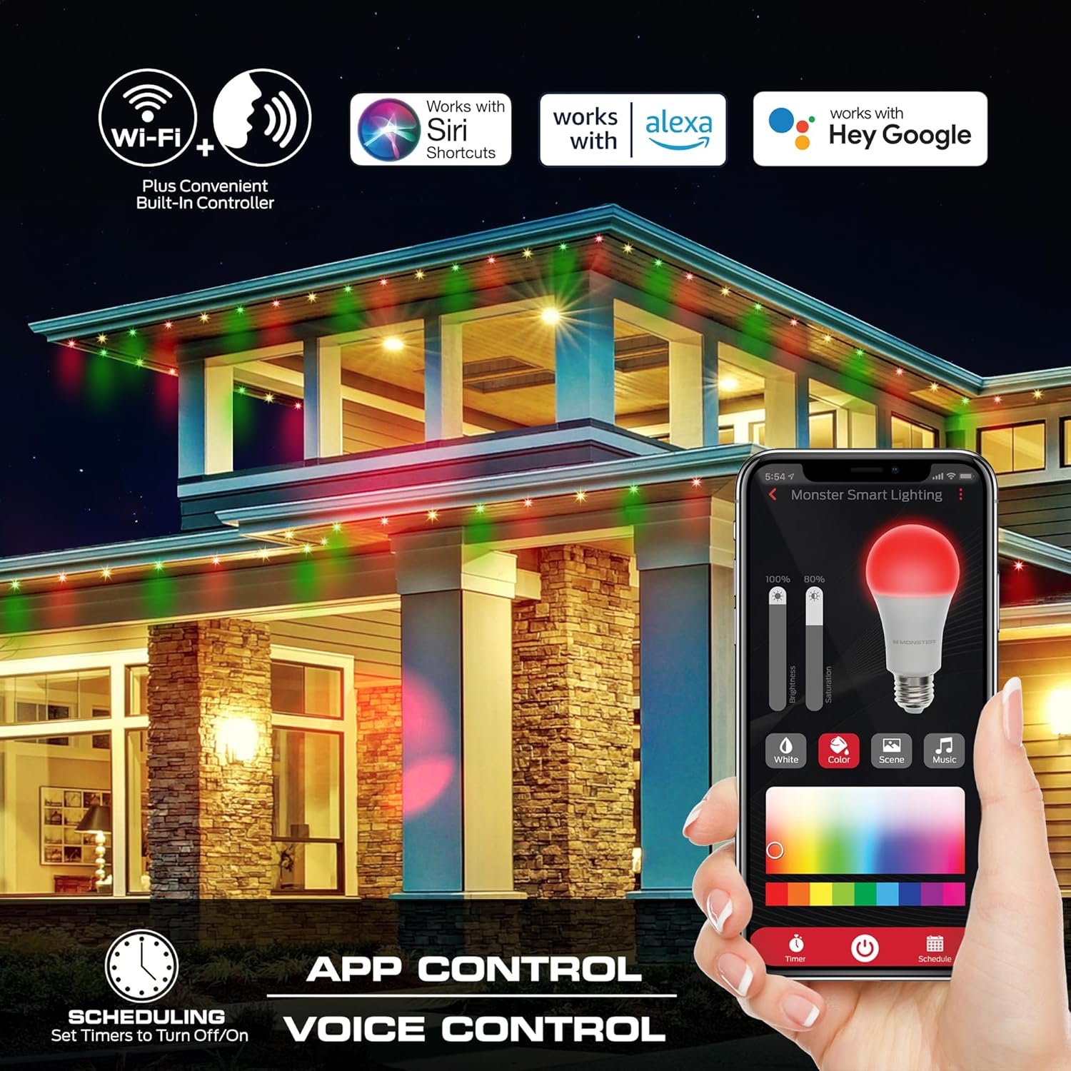 App & Voice Control with Alexa & Google: Easily control the lights via the Monster Smart app or through voice commands using Alexa or Google Assistant. Customize brightness, colors, patterns, and schedules from your smartphone, or use simple voice prompts to change settings hands-free.