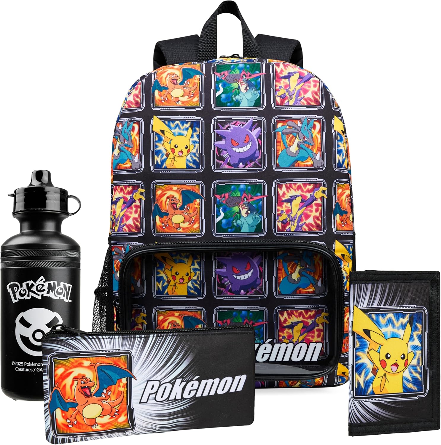 Ultimate Back To School Bundle: Includes a kids Pokemon backpack for school, pencil pouch, kids water bottle, and your choice of a kids wallet or insulated Pokemon lunchbag - check images for available styles
