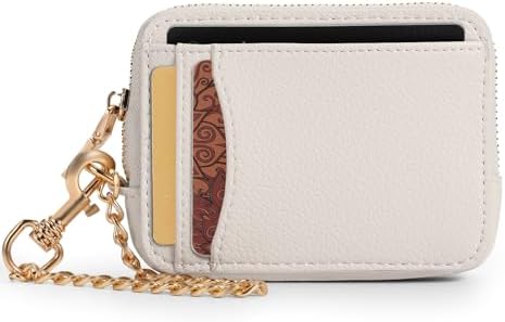 Zip Card Case, Keychain Wallet Card Holder Purse (Beige)