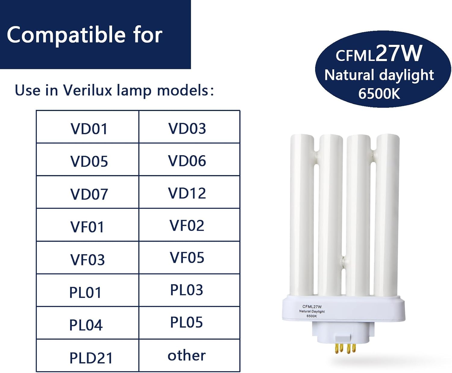 Authentic Replacement: These fluorescent light bulbs are direct replacements for the VERILUX CFML27VLX model, ensuring compatibility and performance.