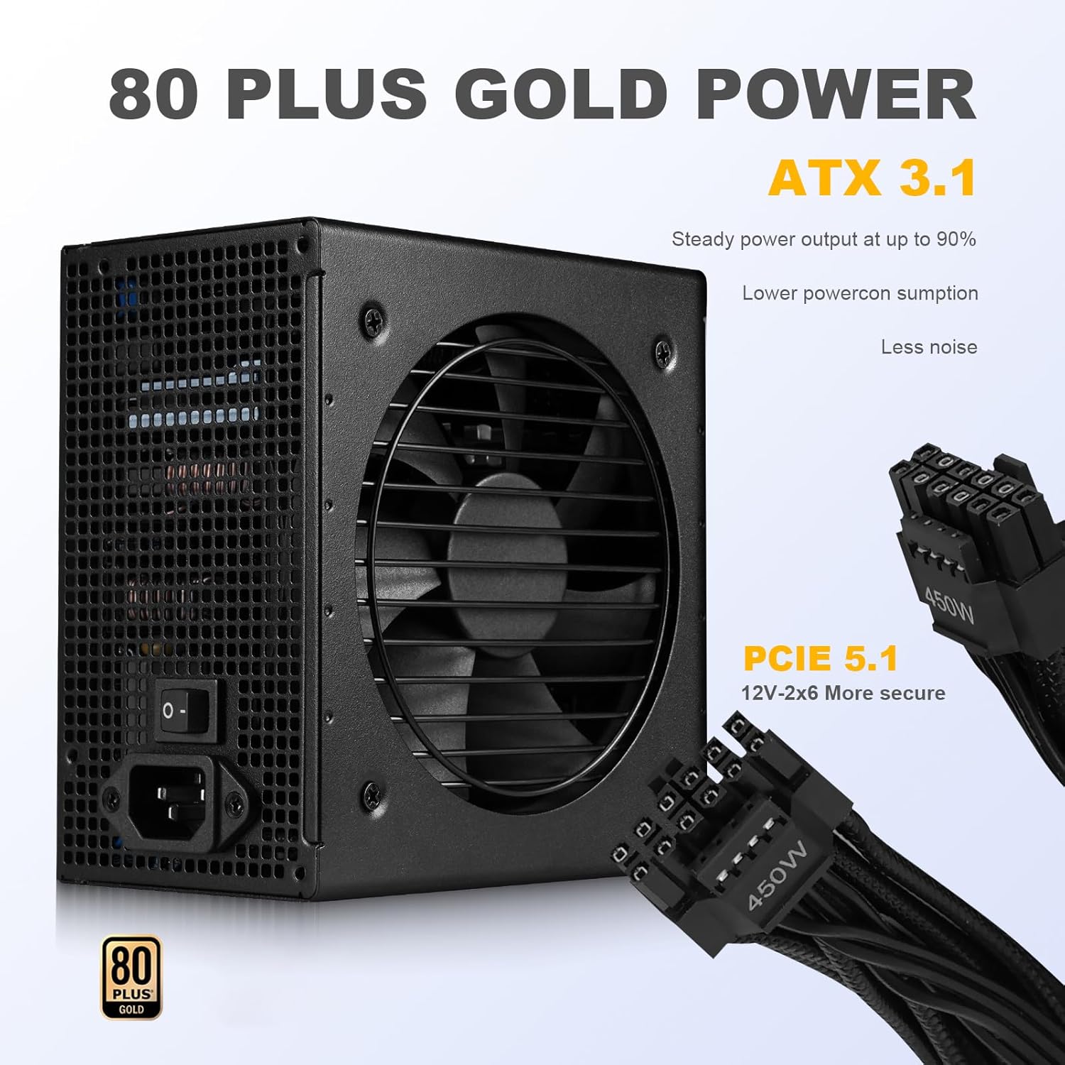 ATX 3.1 & PCIe 5.1 Compatibility: Designed to meet the latest ATX 3.1 standards, this power supply comes with native PCIe 5.1 ports and cables, fully supporting high-end GPUs like the RTX 3090 Ti and RTX 40 series for seamless compatibility and peak performance.
