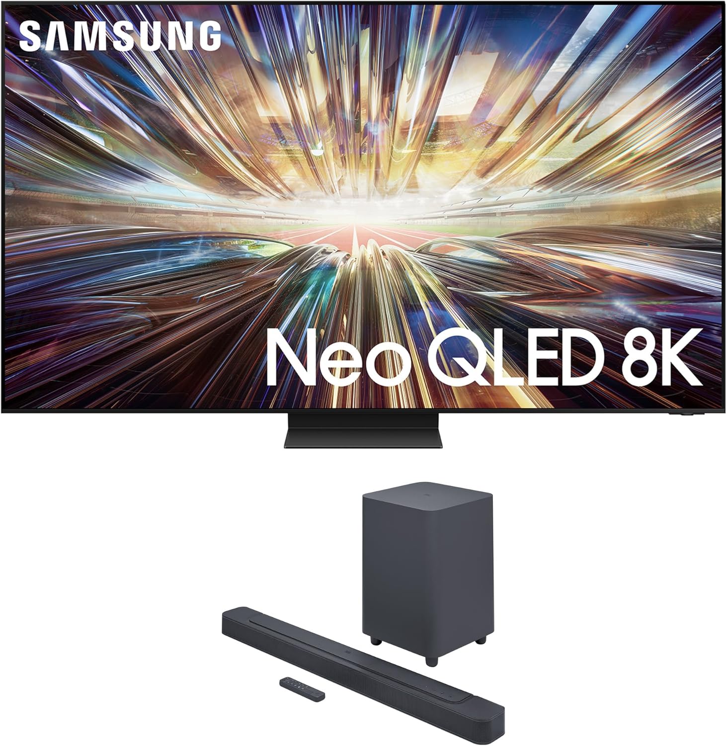 Samsung QN65QN800DFXZA 65 Inch Neo QLED 8K Smart TV with AI Motion Enhancer and a JBL BAR-500 5.1ch Soundbar and Subwoofer with MultiBeam and Dolby Atmos (2024)