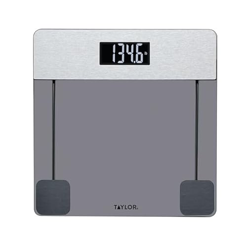 Taylor Digital Glass Bathroom Scale, Scale for Body Weight, Digital Weighing Machine for People, Tinted Glass and Brushed Stainless Steel Accents, 440 lb Capacity, Vanishing LED, Tinted, Clear