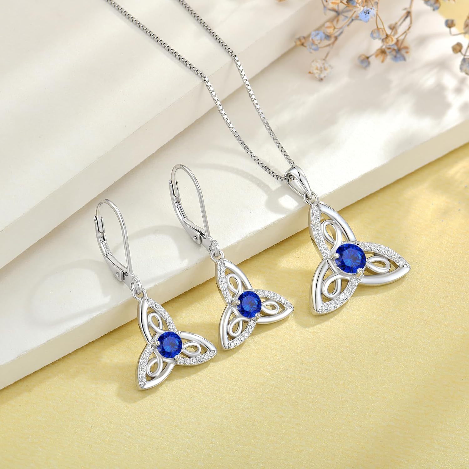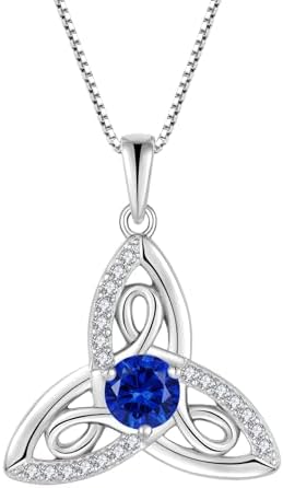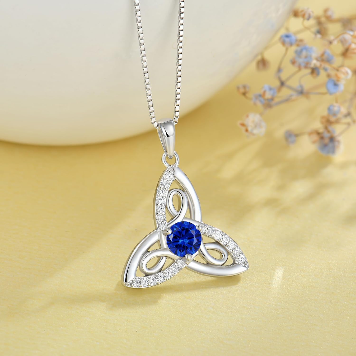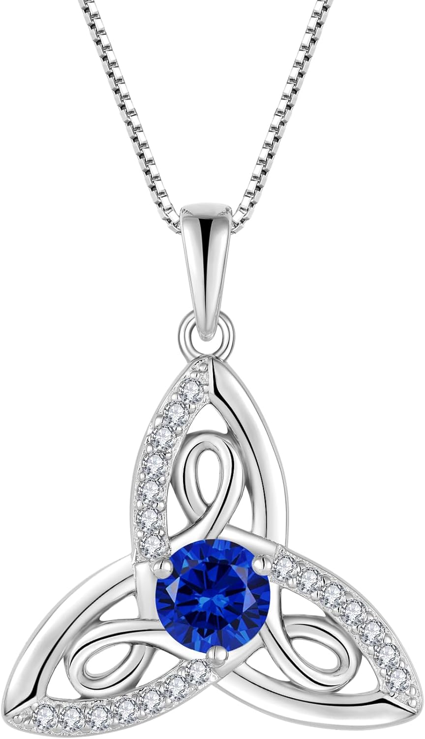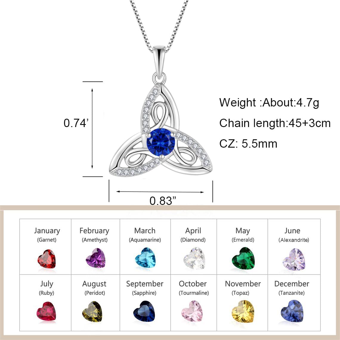 JO WISDOM Celtic Knot Necklace 925 Sterling Silver Trinity Love Knot Pendant 5.5mm Birthstones Necklace Jewelry for Women